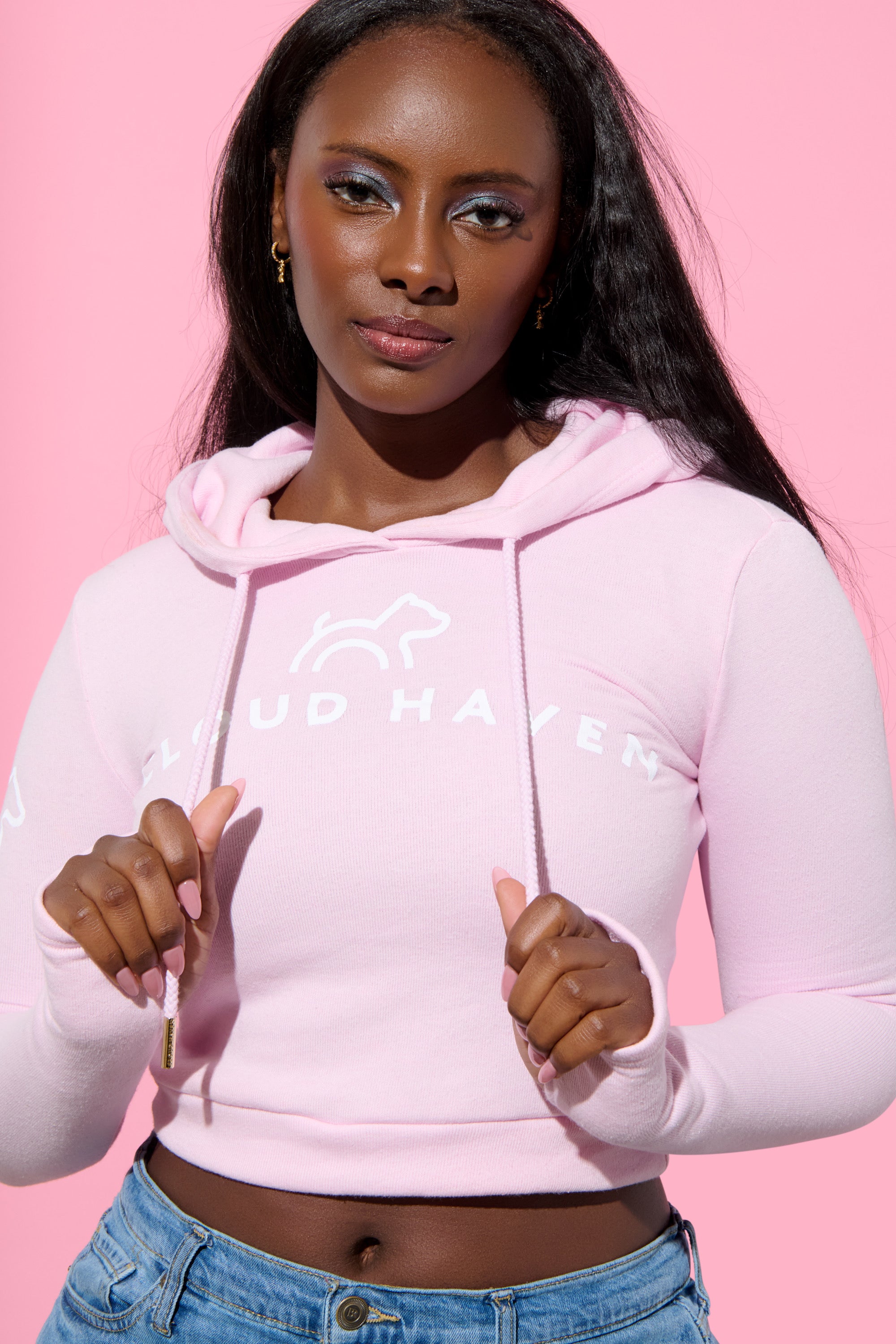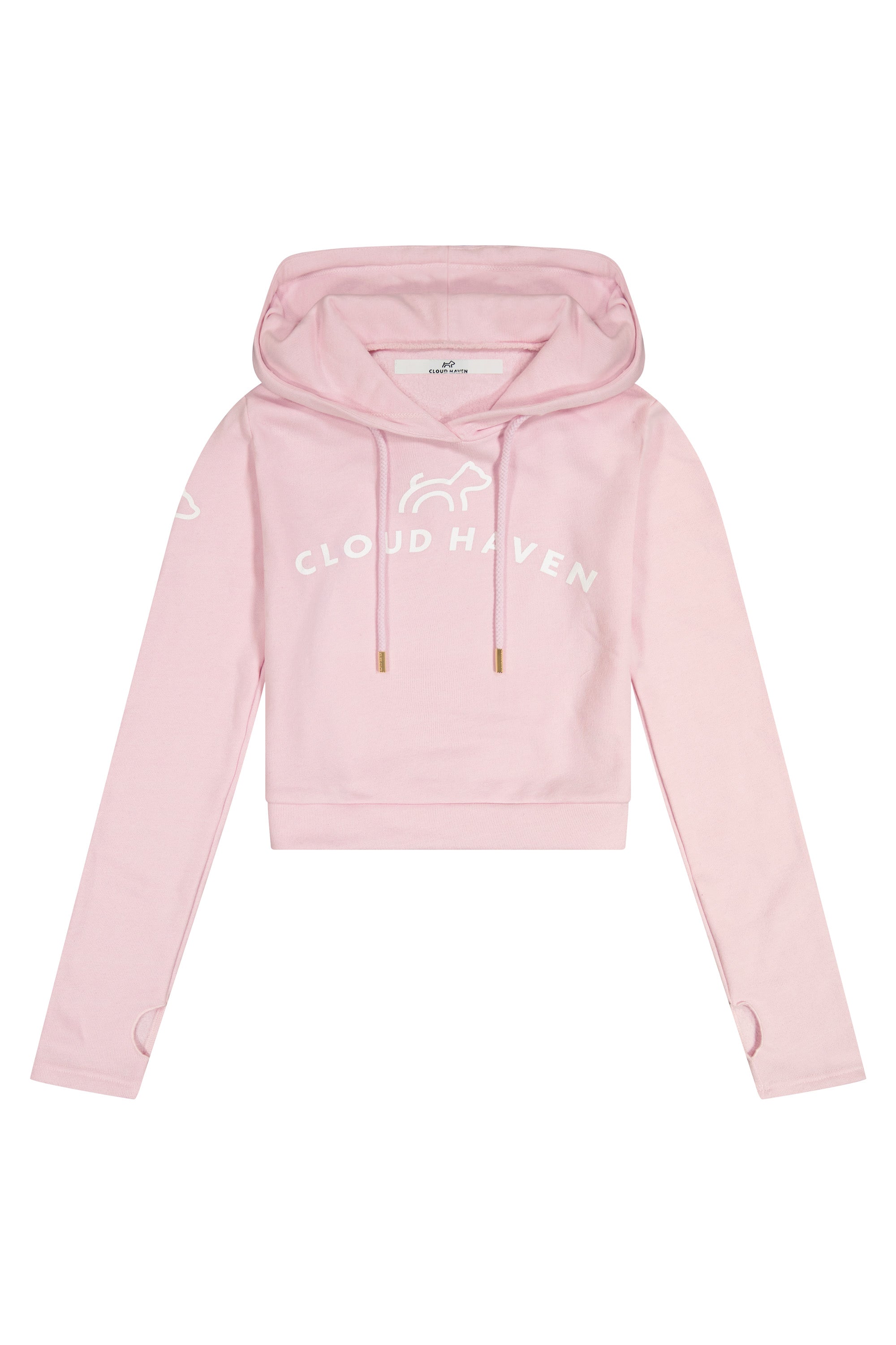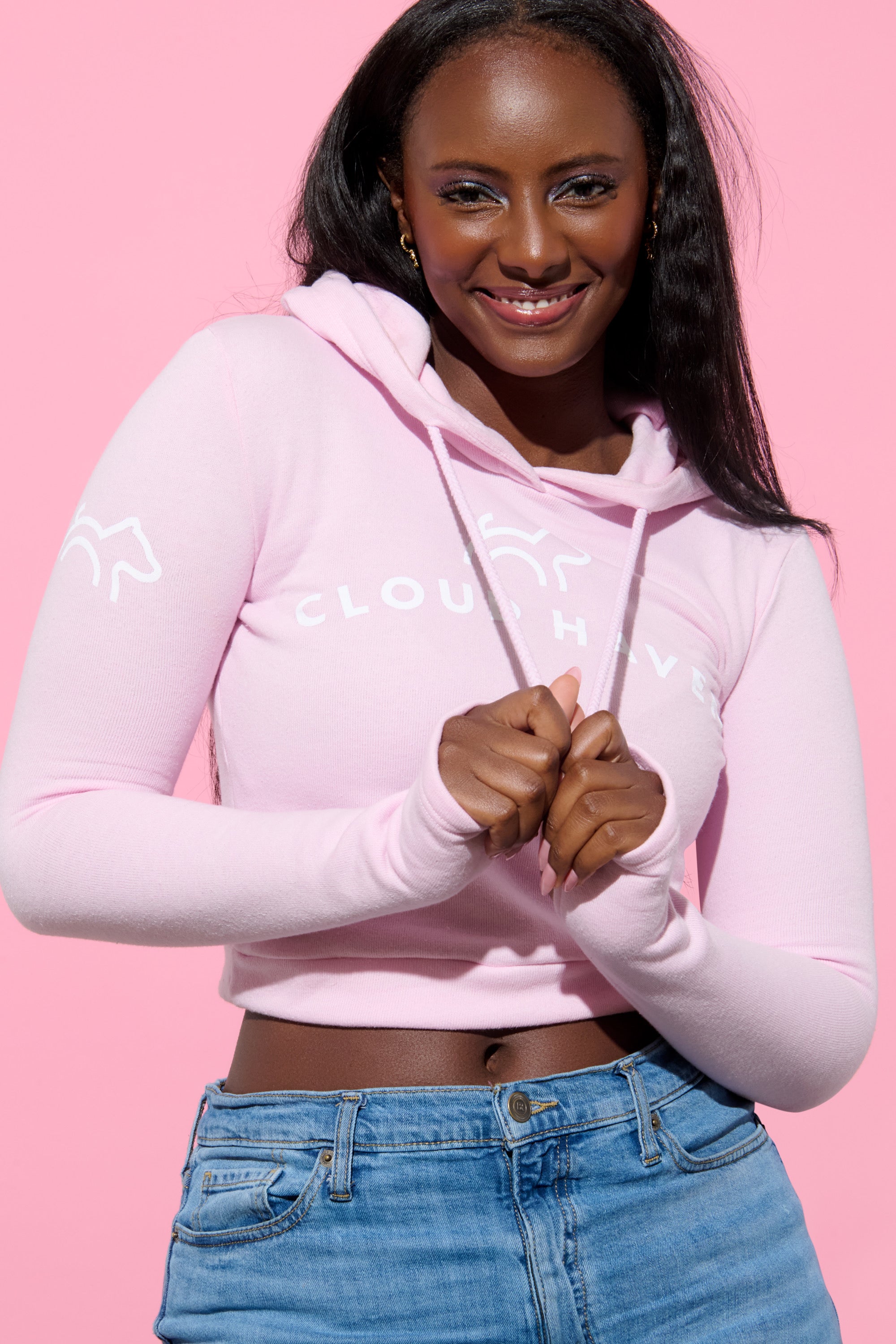 Cloud Haven Cozy Crop Logo Hoodie in Soft Pink