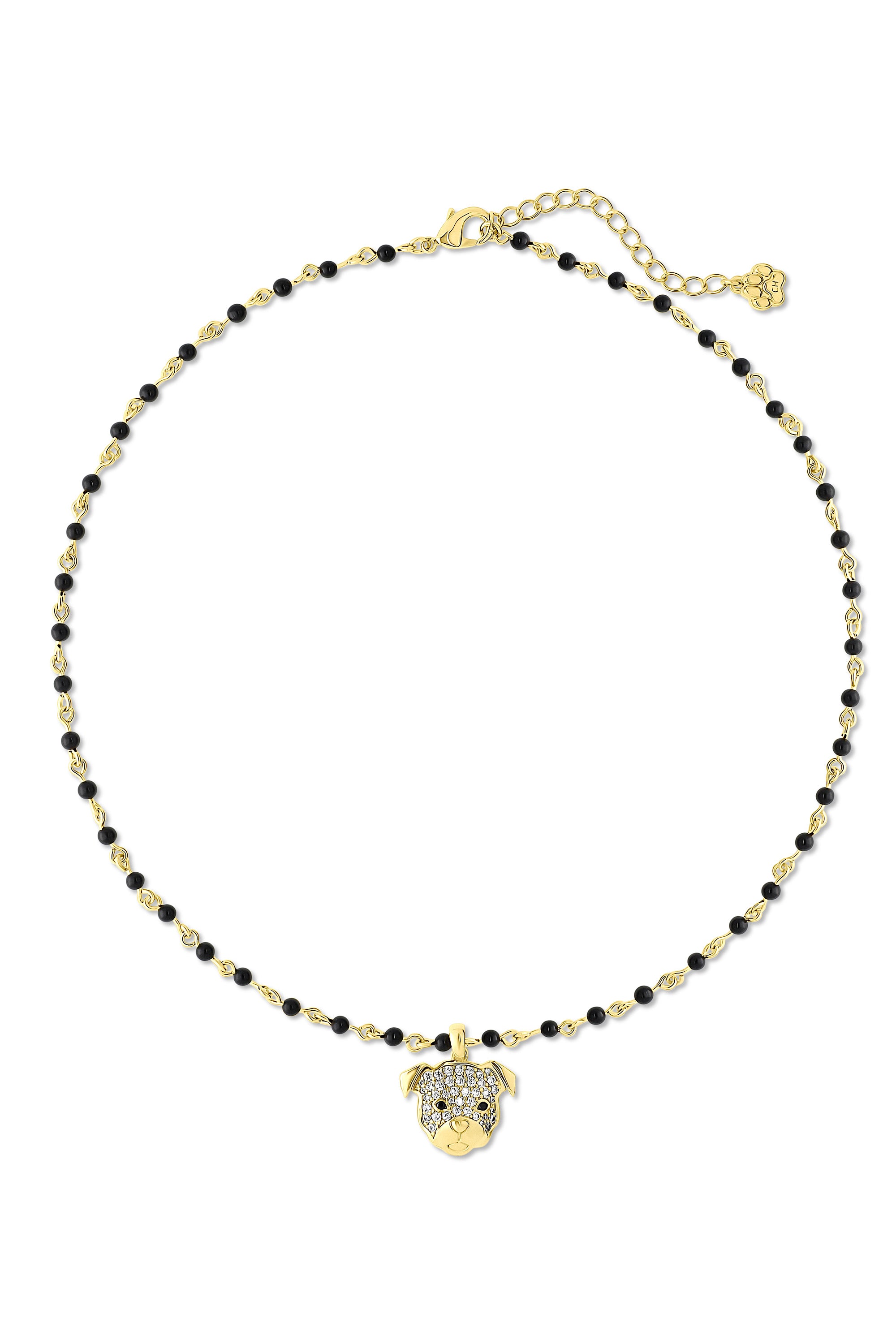 Cloud Haven Soft Hearted CZ Studded Pit Bull Necklace Black