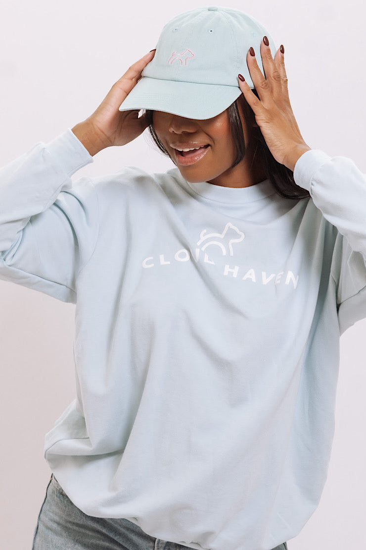 Cloud Haven Logo Boyfriend Sweatshirt in Pale Blue