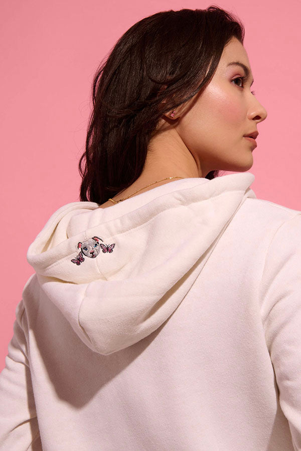 Cloud Haven Sweet Pit Bull Zip Up Hoodie in Off White