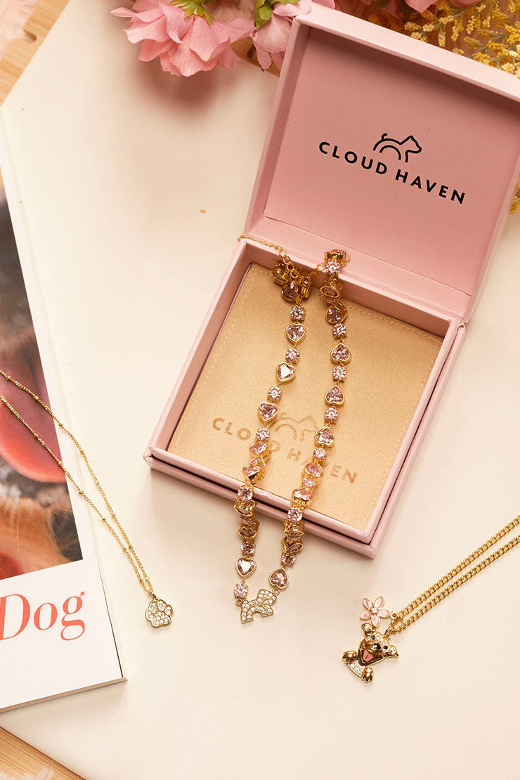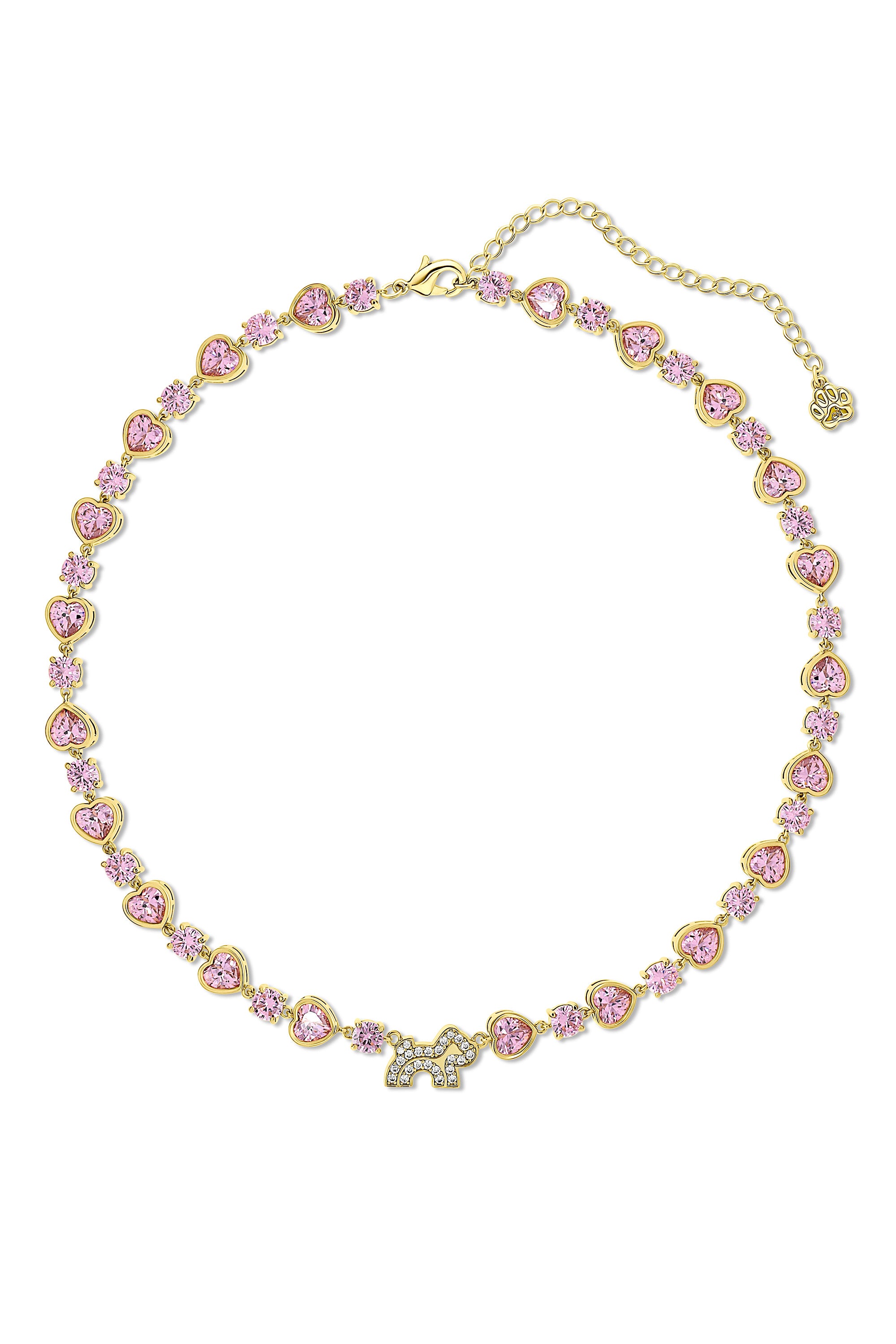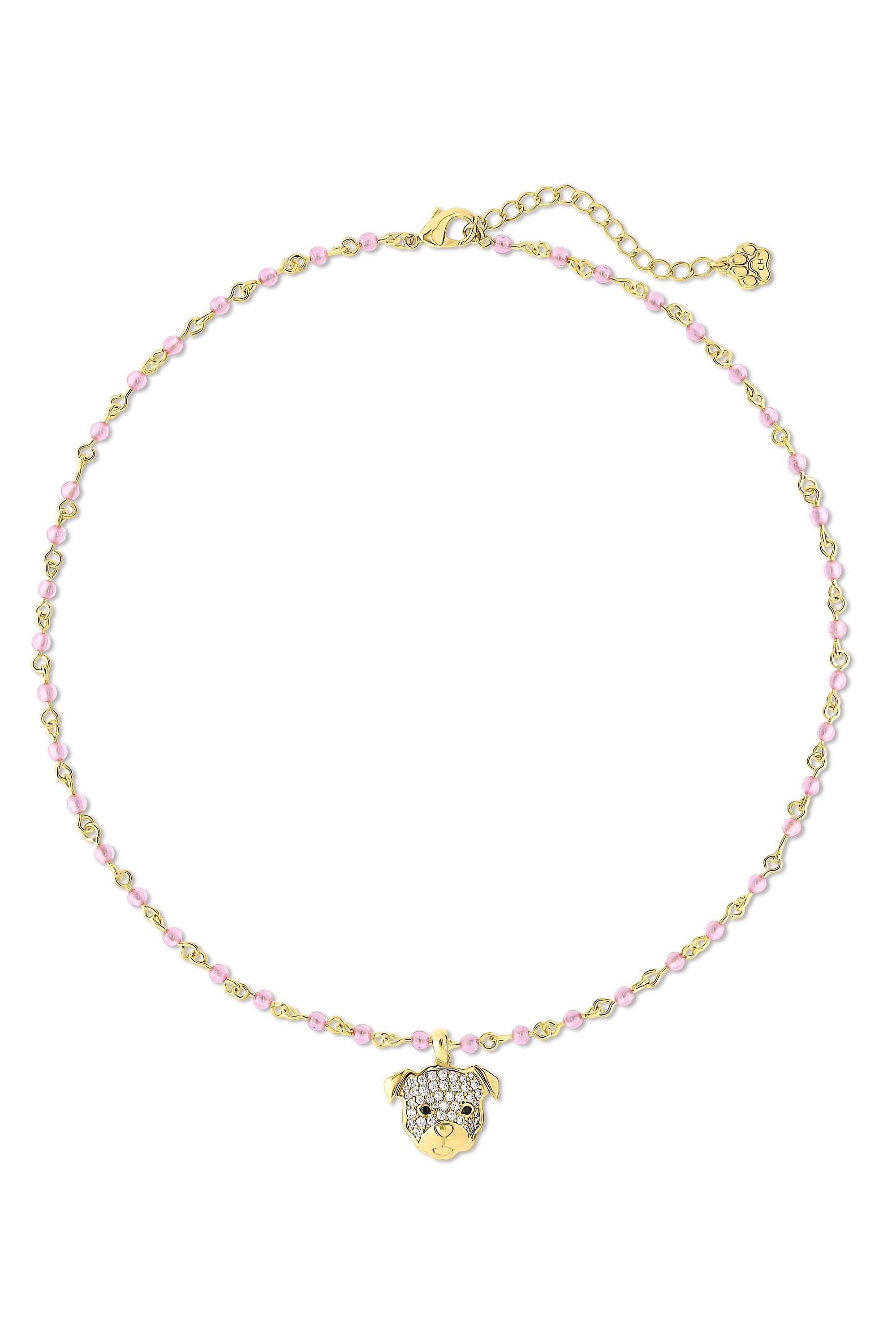 Cloud Haven Soft Hearted CZ Studded Pit Bull Necklace Pink