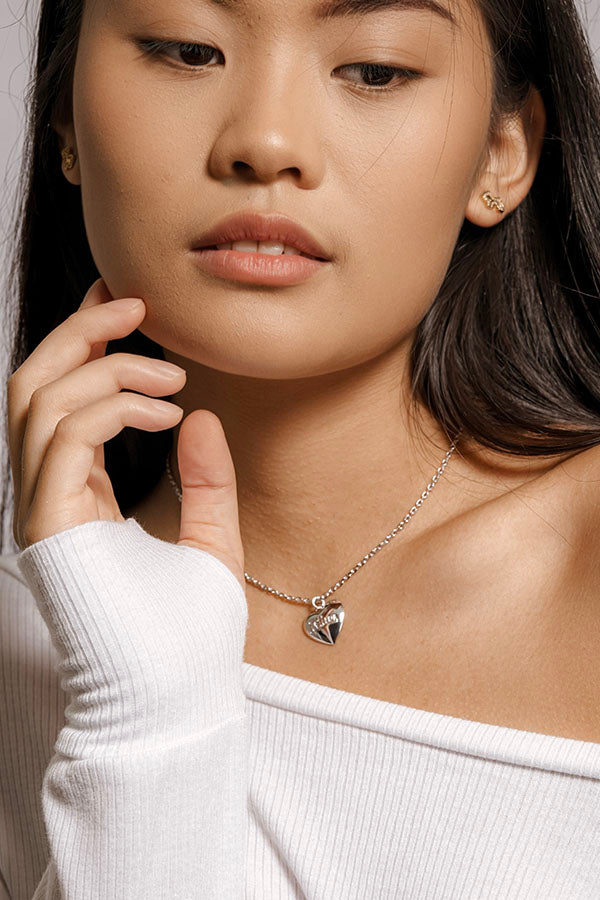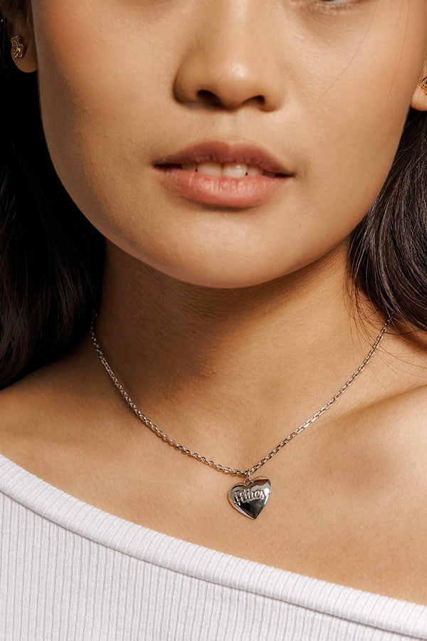 Cloud Haven Heart Crystal Logo Necklace Pink