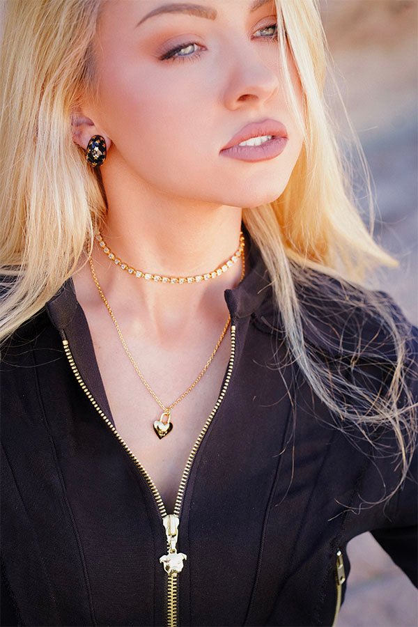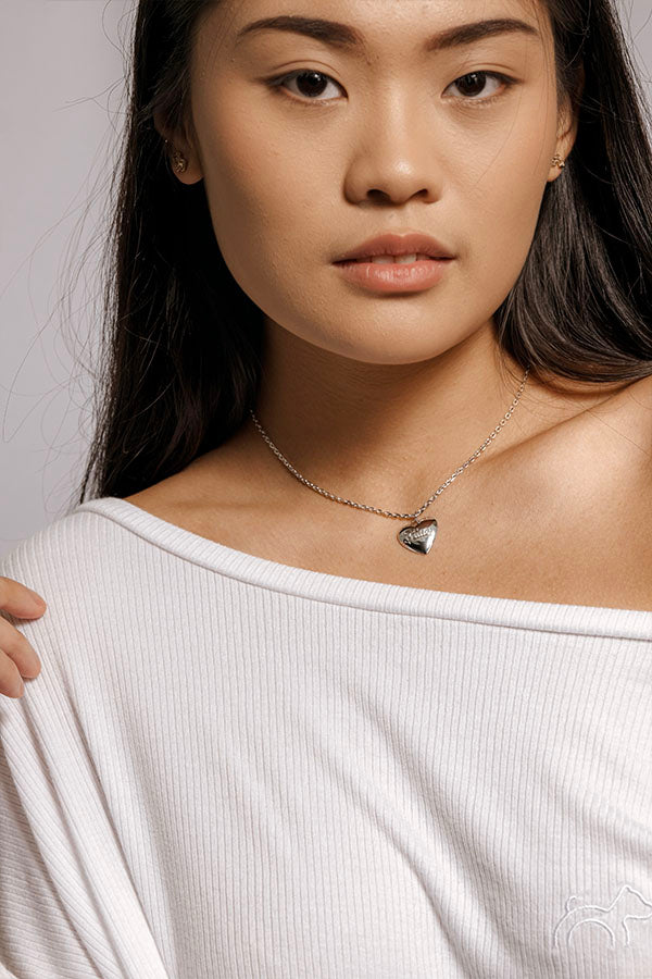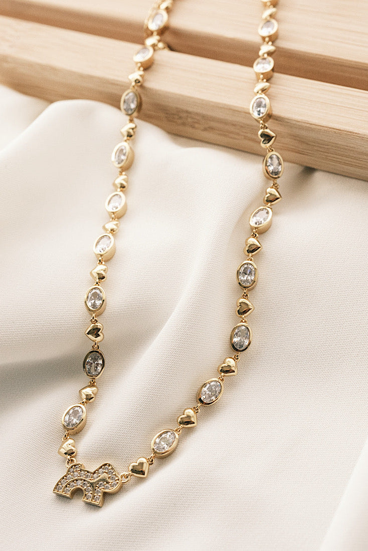Cloud Haven Soft Hearted CZ Studded Bulldog Necklace White