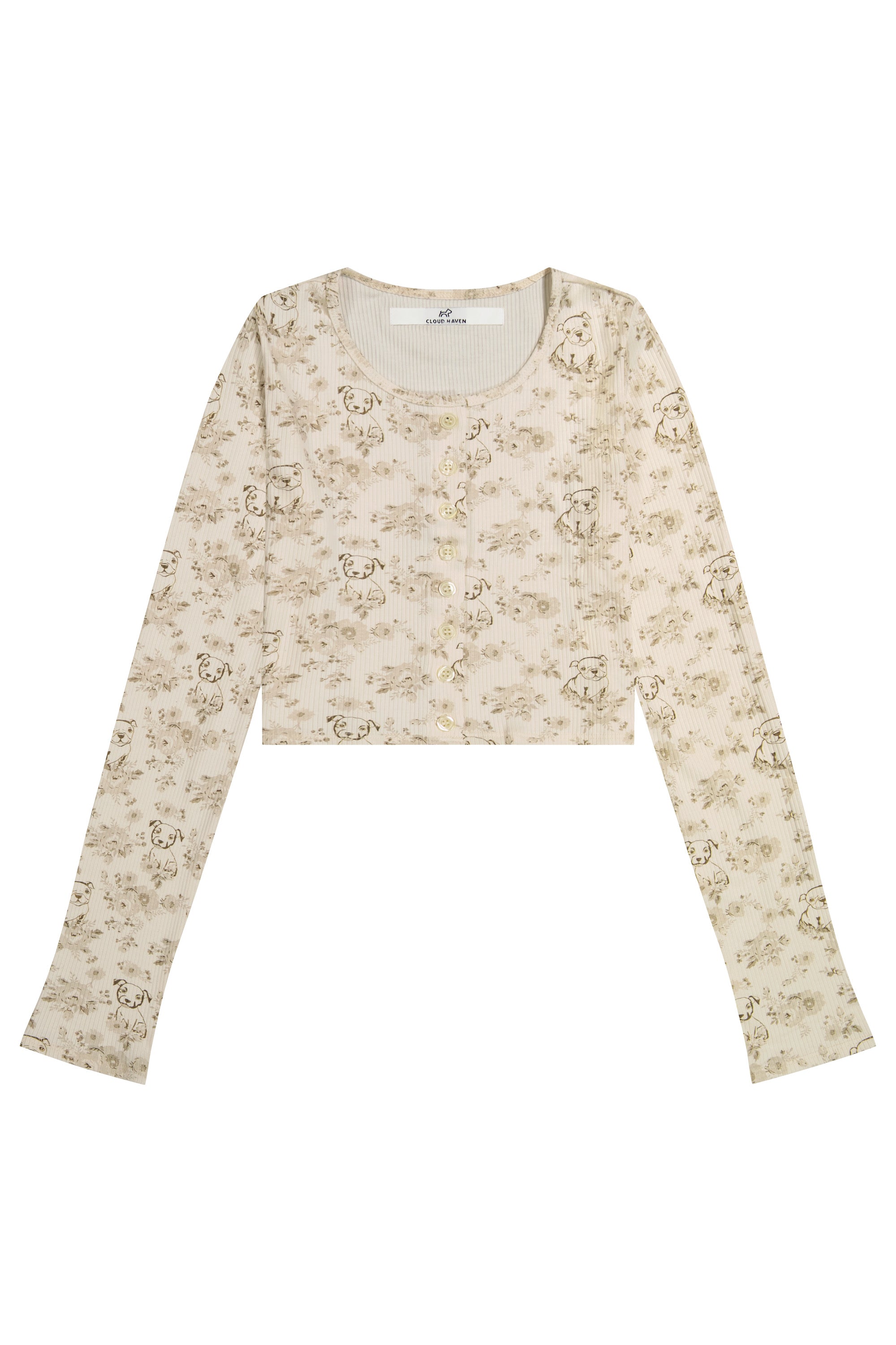 Cloud Haven Sweet Toile-Print Cardigan in Desert Beige