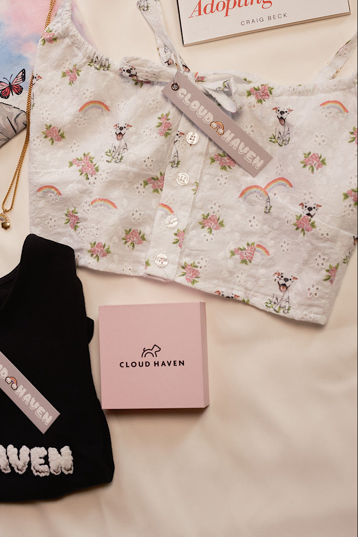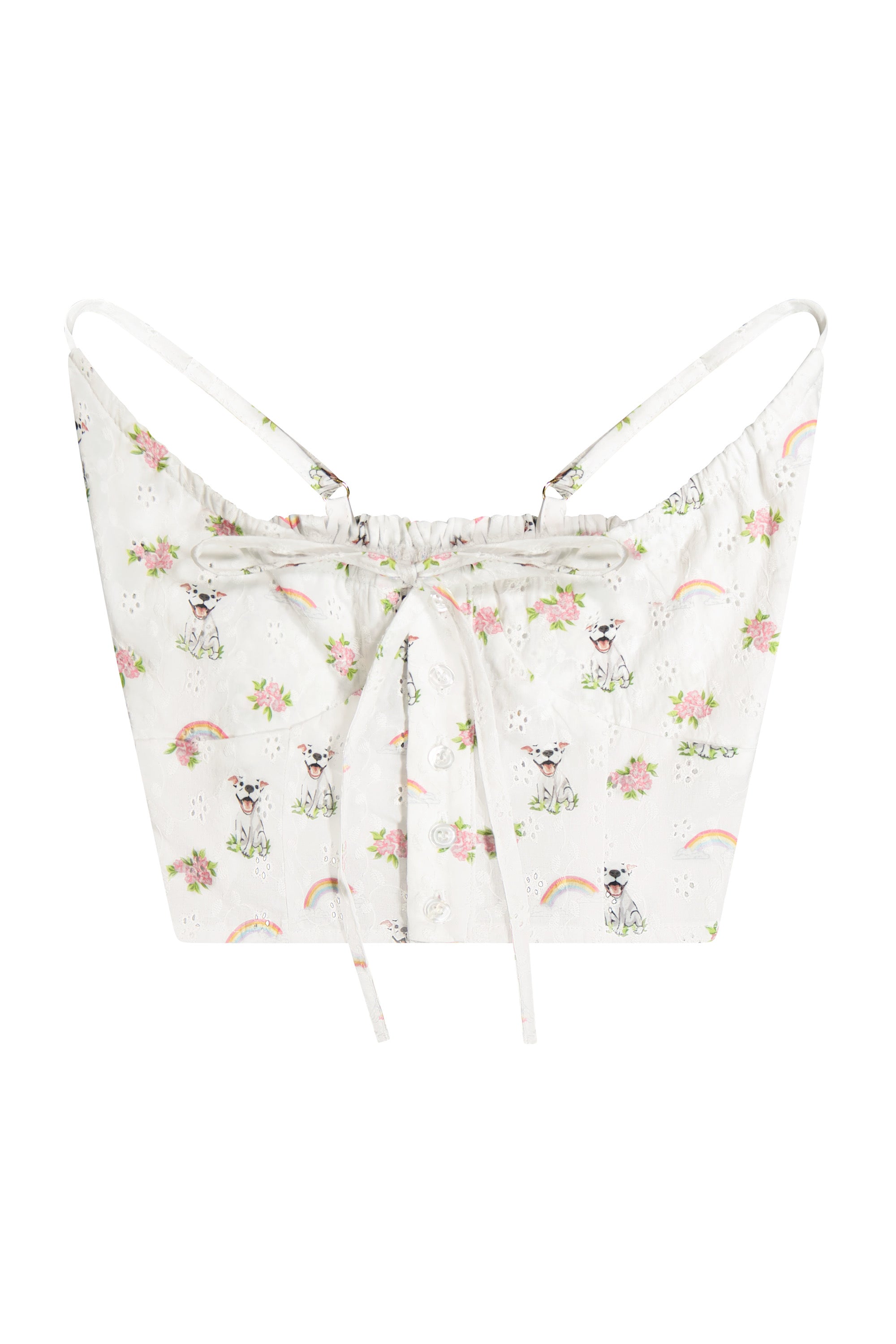Cloud Haven Ditsy Rainbow Cami Top | Rainbow and Flower Graphic Cropped Cami White