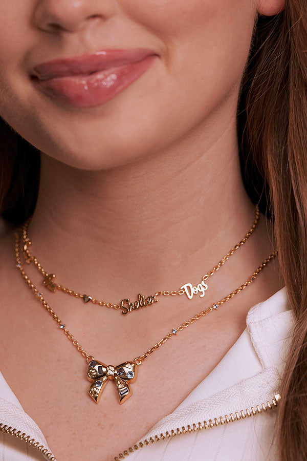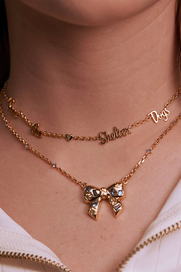 The Compassion Scripted Necklace is elegant, chic, and full of heart. This piece features a dainty chain with beautiful scripted “Save Our Shelter Dogs” detail. Crafted from high-quality 24k gold plated brass, and finished with a lobster clasp & our signature paw print tag, this necklace will be a meaningful addition to your jewelry collection.