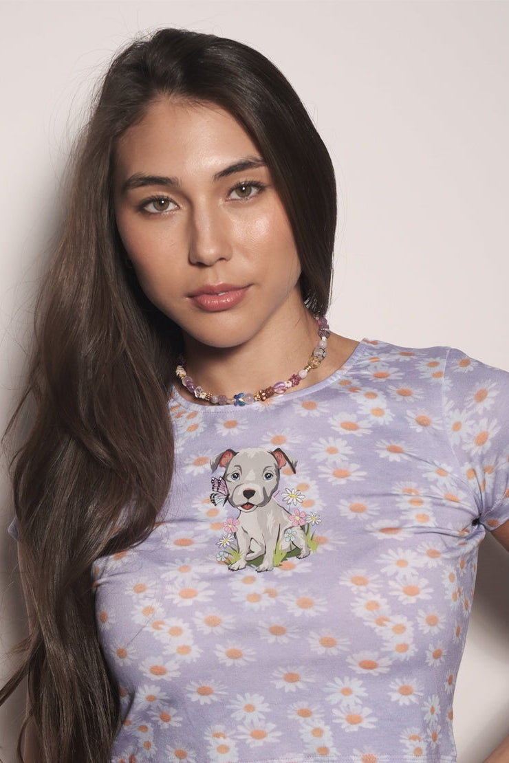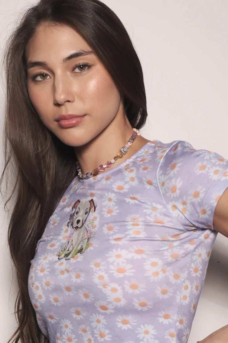 Cloud Haven Daisy Pittie Baby Tee | Daisy Graphic Crop Top Purple