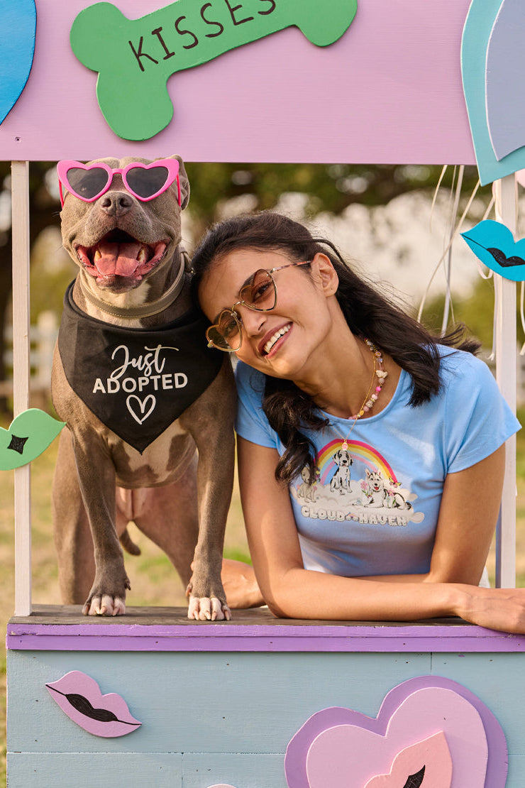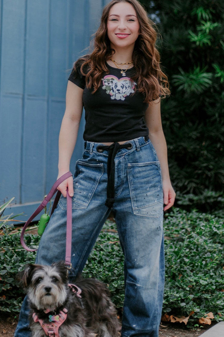 Cloud Haven Big Heart Signature Pittie Baby Tee | Rainbow Graphic Crop Top Pink