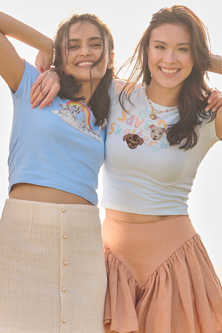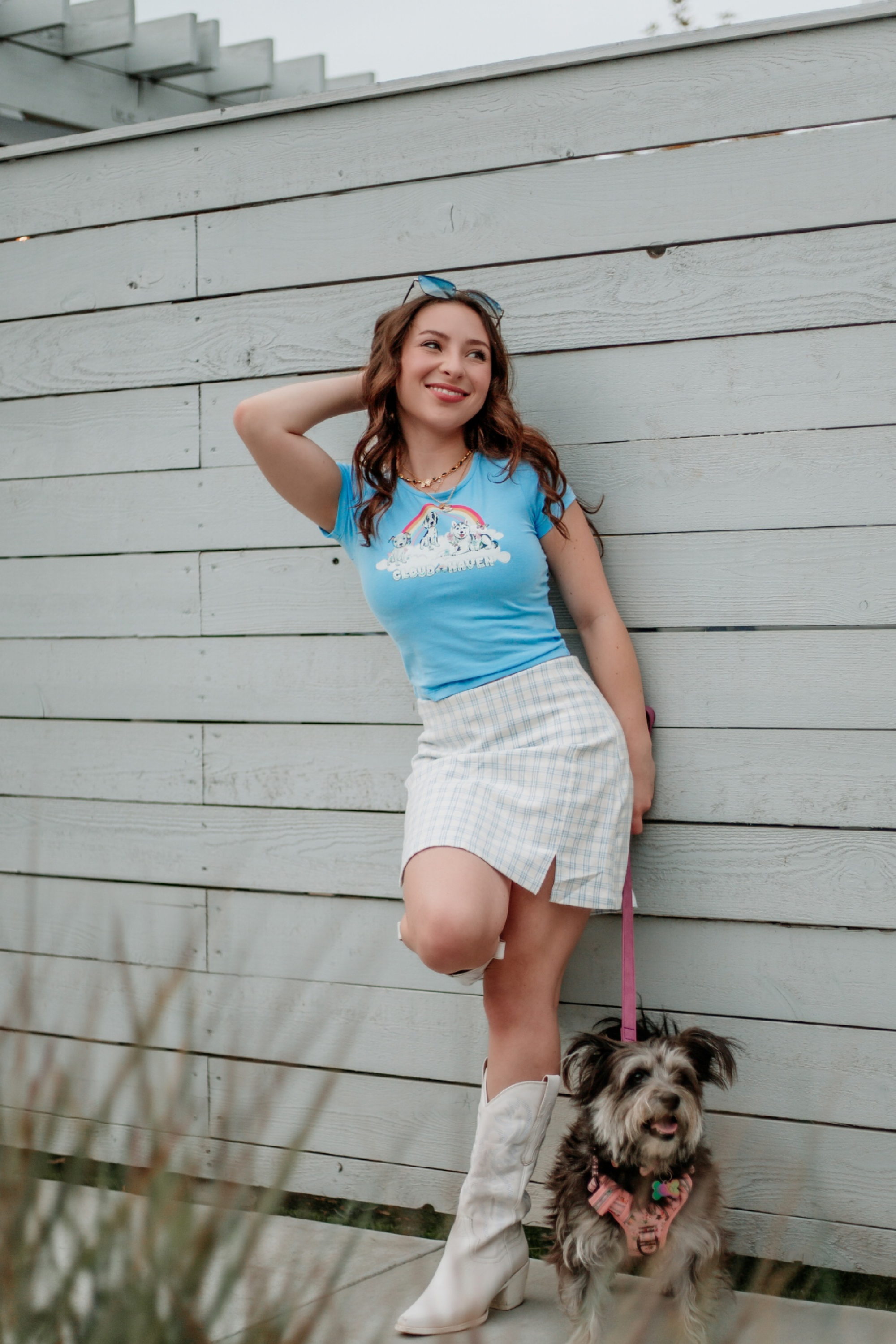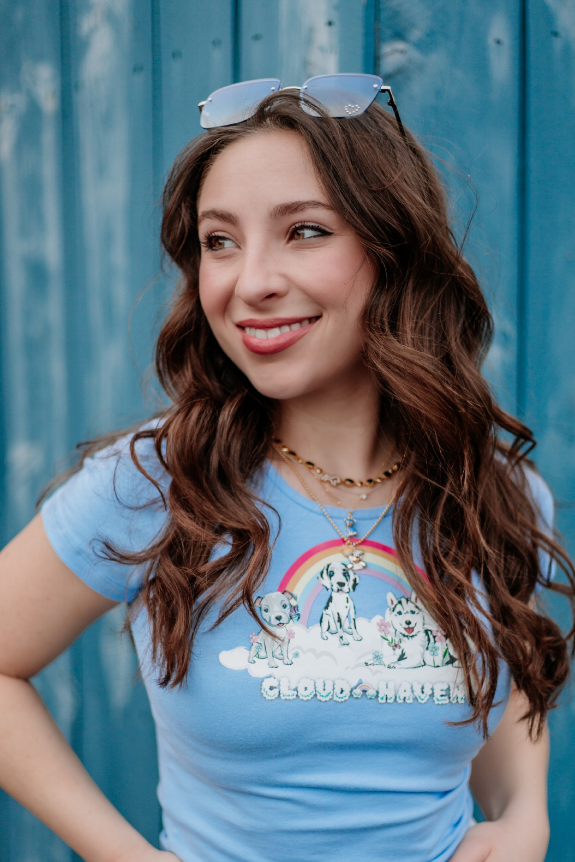 Cloud Haven Heavenly Pittie Baby Tee | Rainbow Graphic Crop Top Blue