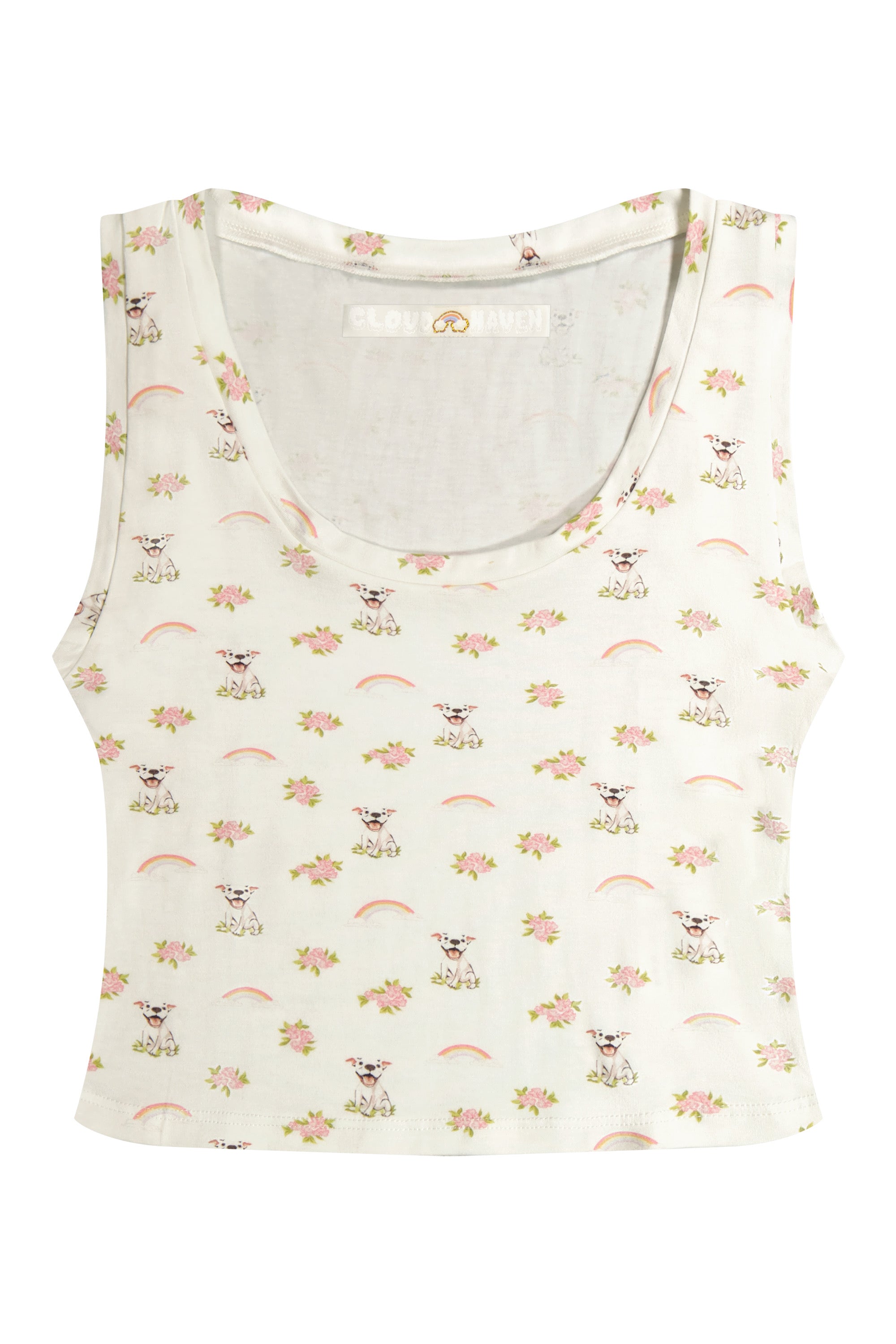 Cloud Haven Ditsy Rainbow Cami Top | Rainbow and Flower Graphic Cropped Cami White