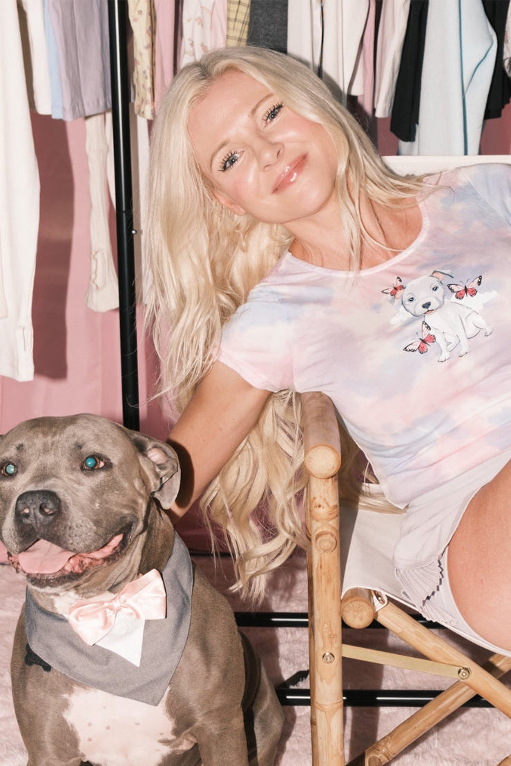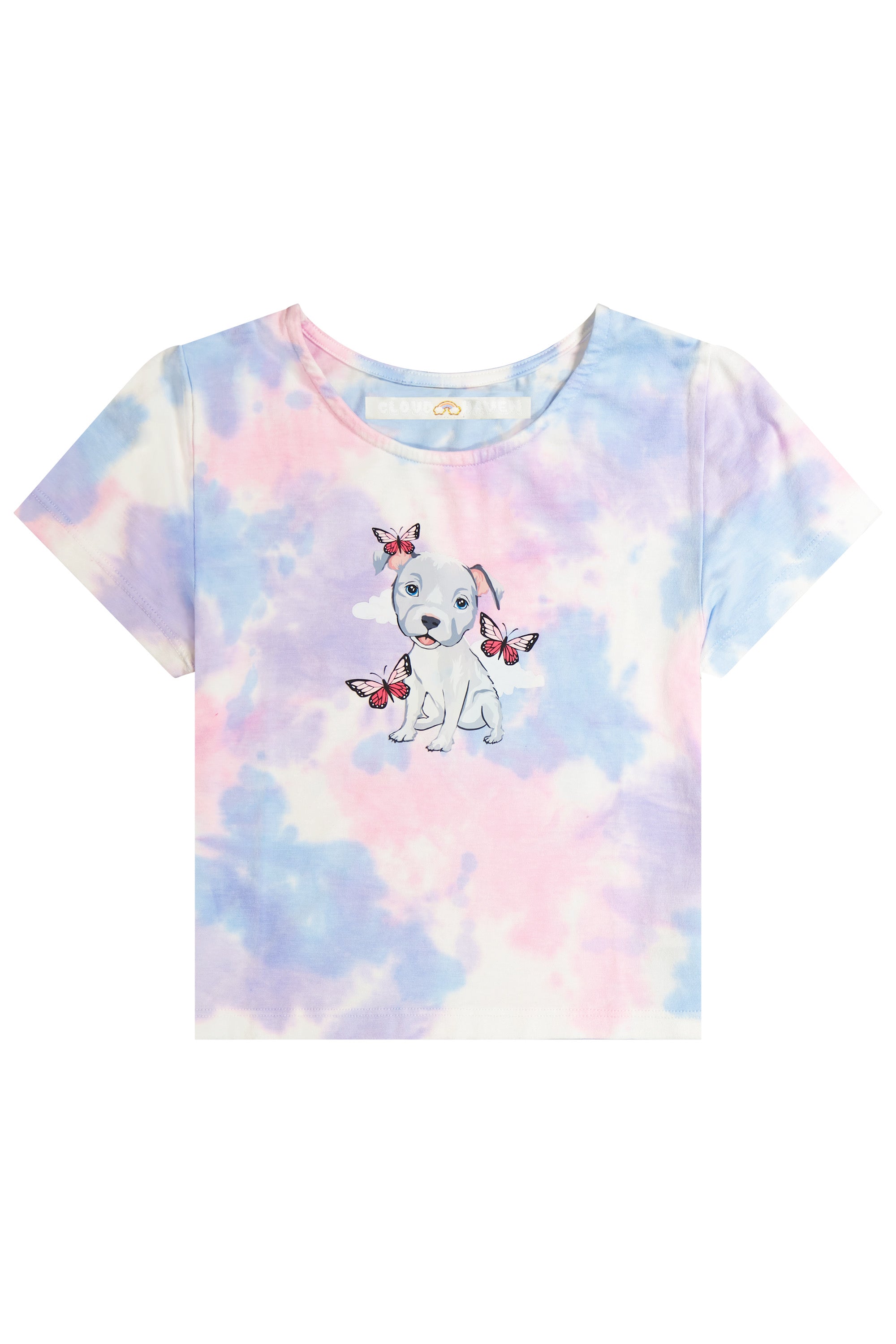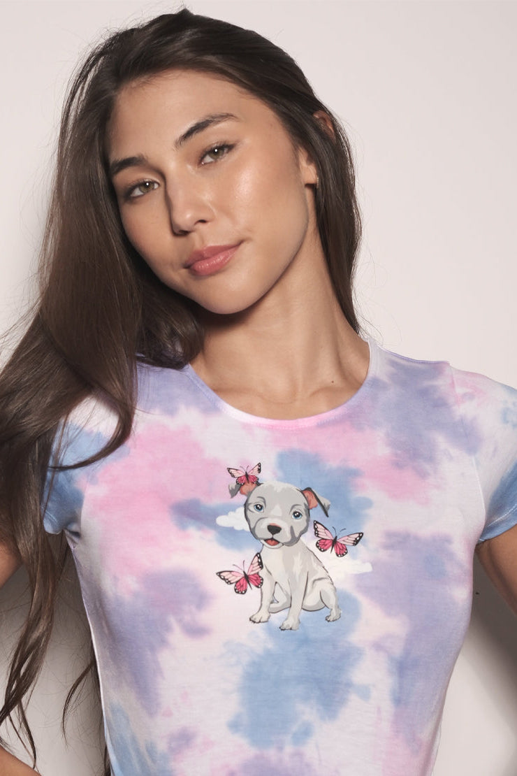 Cloud Haven Pittie Tie Dye Tee | Graphic Crop Top Pink & Blue
