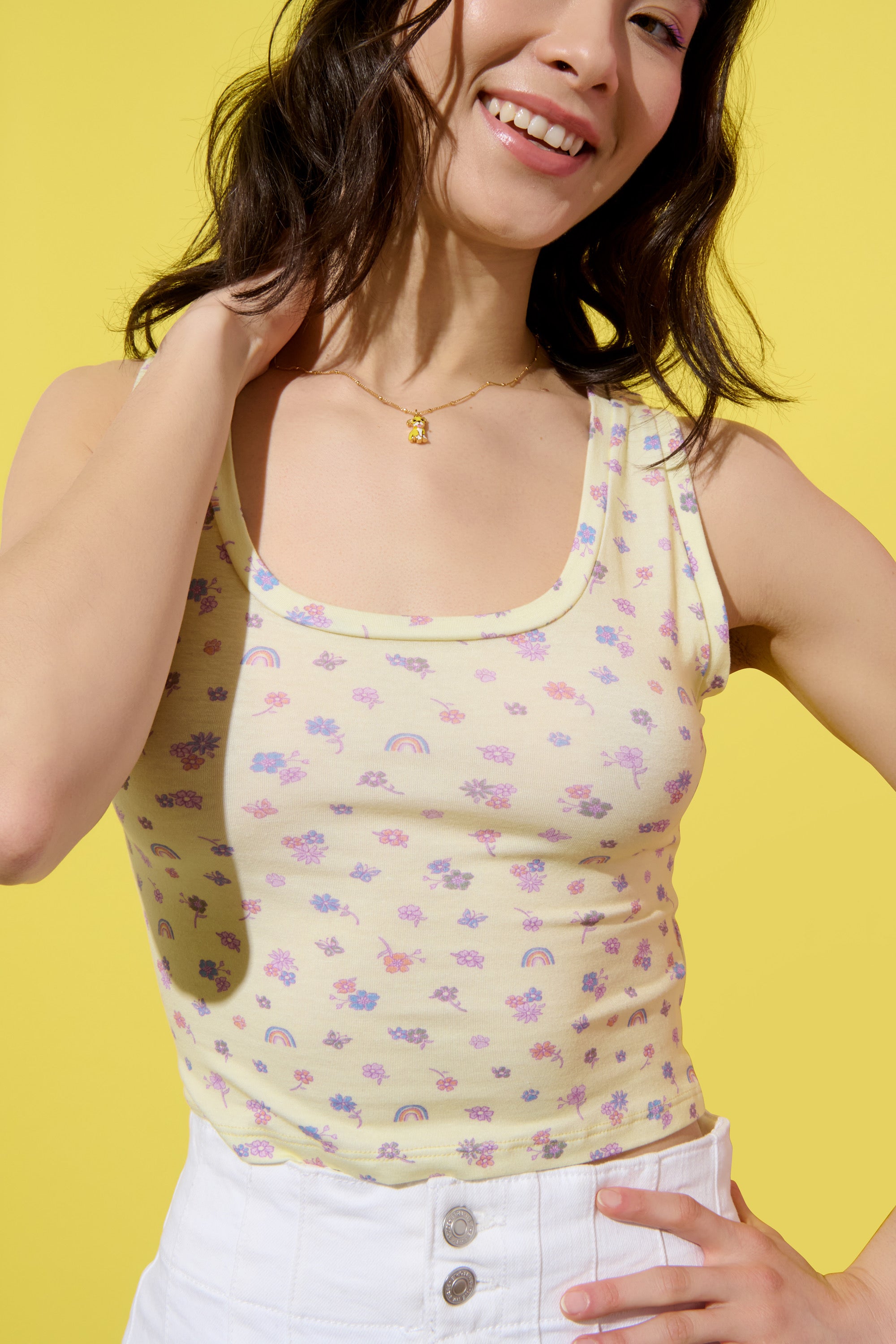 Cloud Haven Ditsy Floral Tank | Rainbow and Flower Graphic Yellow