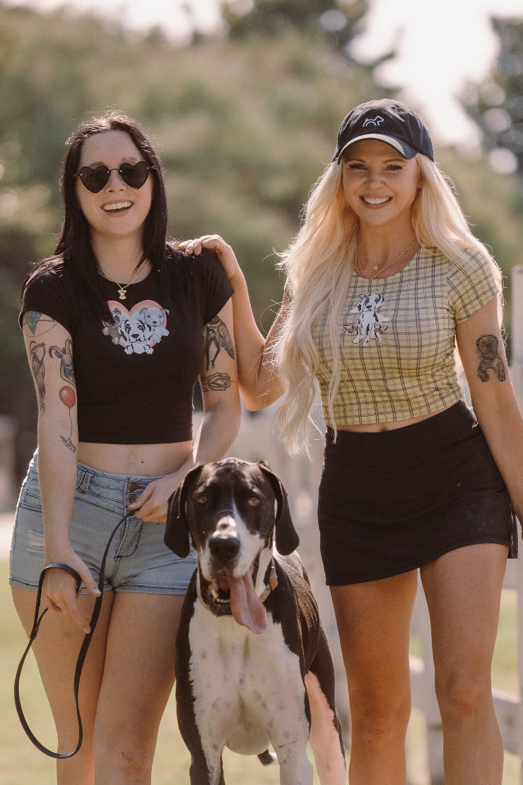 Cloud Haven Plaid Sweet Dane Tee | Yellow Plaid Graphic Baby Tee