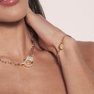 Sleek and simple bracelet featuring a dainty chain centered around a custom CZ studded paw print pendant. Made from high quality 24k gold plated brass and finished with a lobster clasp and our signature paw print tag.