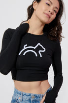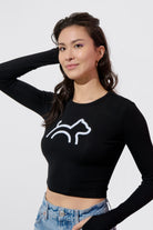 Meet our Cloud Haven Rib Long Sleeve Thumbhole Tee in classic black. Cut from an exquisitely soft Tencel Modal and Spandex blend, and featuring our white dog logo, this tee symbolizes that together we’re making a difference. Wrap yourself in comfort and feel good knowing this style gives back.