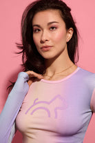 Meet our Cloud Haven Rib Long Sleeve Thumbhole Tee in sherbet rainbow. Cut from an exquisitely soft Tencel Modal and Spandex blend, and featuring our brand pink dog logo, this tee symbolizes that together we’re making a difference. Wrap yourself in comfort and feel good knowing this style gives back.
