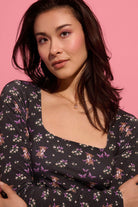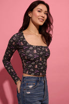 Cloud Haven Long Sleeve Tan Pit Bull Square Neck Tee in Black