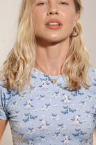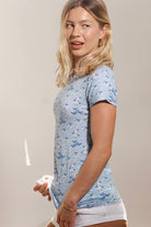 Cloud Haven Fitted Signature Print Tee in Blue Daisy