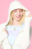 Cloud Haven Sweet Pit Bull Zip Up Hoodie in Off White