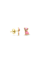 These adorable earring studs feature our pink pit bull painted with enamel and created with 24k gold plated brass and finished with a butterfly back.