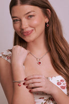 Classic and chic, we dressed up this red enamel painted heart tag bracelet with a delicate statement cable chain, front clasp detail, & meaningful “Save Dogs” engraving. Part of our “Just One Wish” collection, this piece is crafted from premium rhodium plated brass and measures 6.75 inches in length.