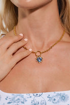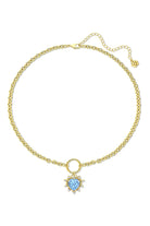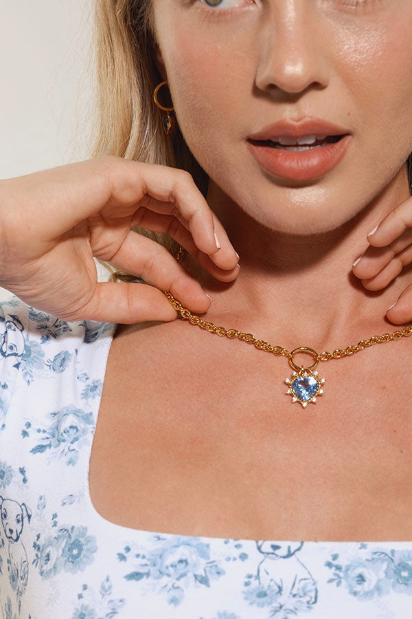 Chain Crystal CZ Heart Pendant Necklace Blue / Gold