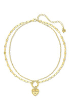 Engraved Layered Heart Pendant Necklace Gold