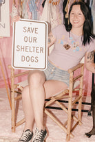 Our Mission Tee is created with high-quality organic cotton and comes in a soft lilac. Featuring beautifully crafted chenille patch pit bull accents, this baby tee is both comfortable and stylish.