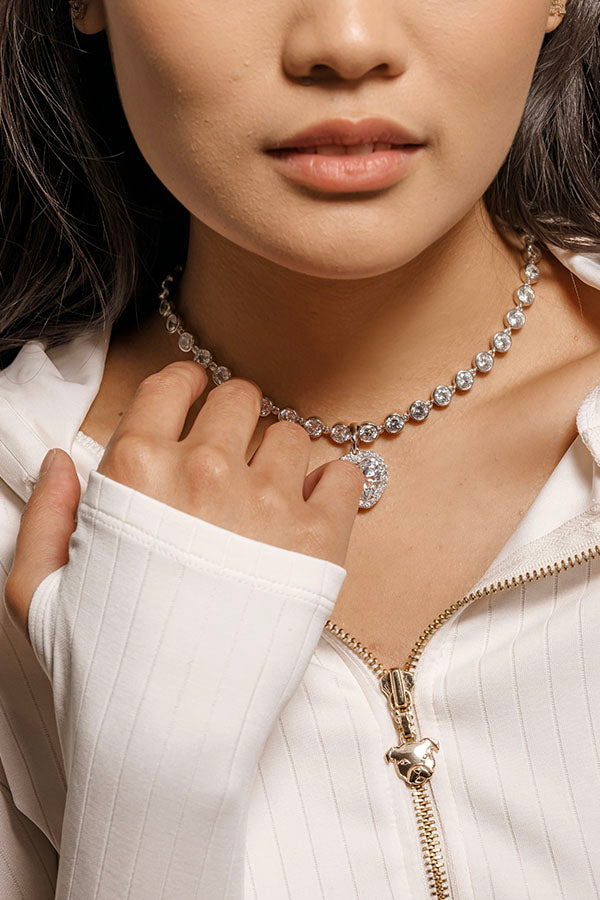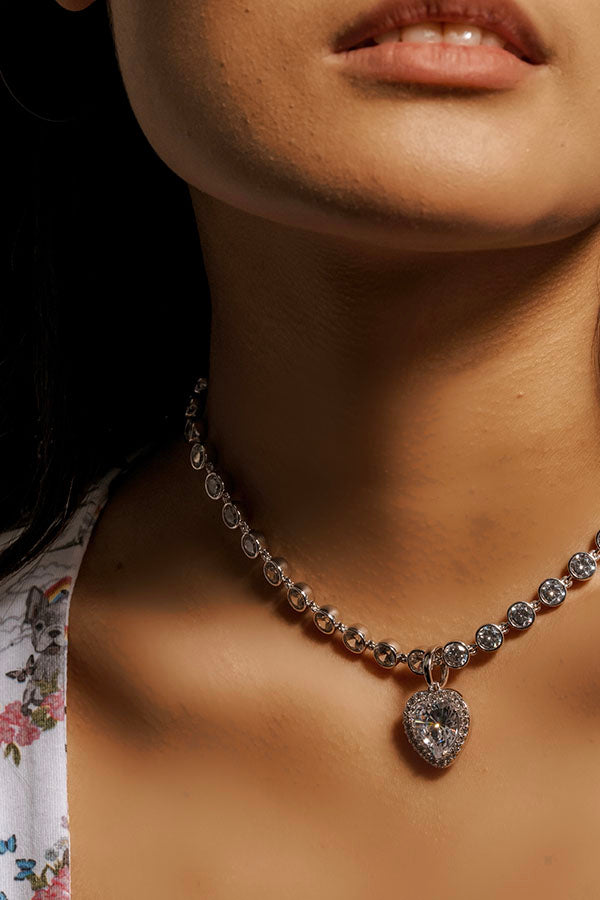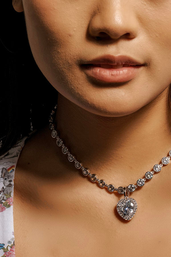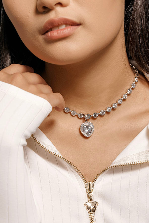 This beautiful statement piece features a delicate CZ studded chain centered by an intricately crafted CZ heart pendant. Created with high-quality Rhodium plated brass and finished with a lobster clasp and our signature paw print tag, this gorgeous piece is inspired by unconditional love & inner beauty.