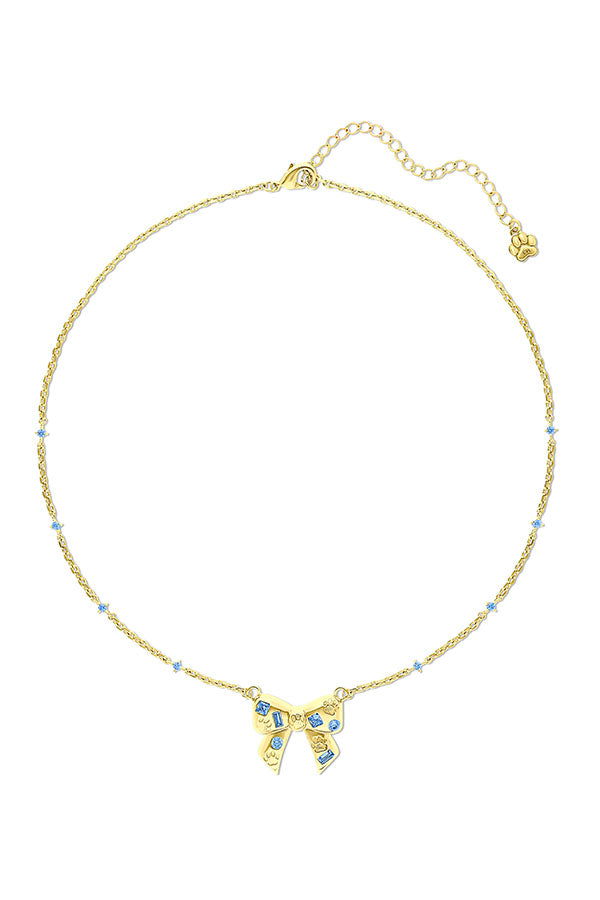 Crystal Bow & Paw Prints Necklace Blue / Gold