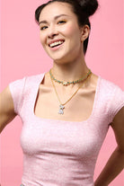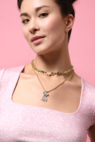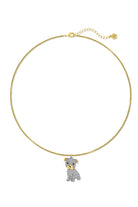 Features a beautifully crafted custom CZ studded pit bull pendant dangling from a dainty chain. Made from high quality 24k gold plated brass and finished with a lobster clasp and our signature paw print tag.