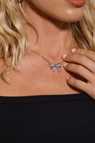 Romantic and beautiful, we dressed up this sweet bow necklace with meaningful paw print engraving, CZ stone detail, and a delicate crystal studded chain. Part of our “Just One Wish” collection, this piece is crafted from premium rhodium plated brass, and finished with a lobster clasp & our signature paw print tag.