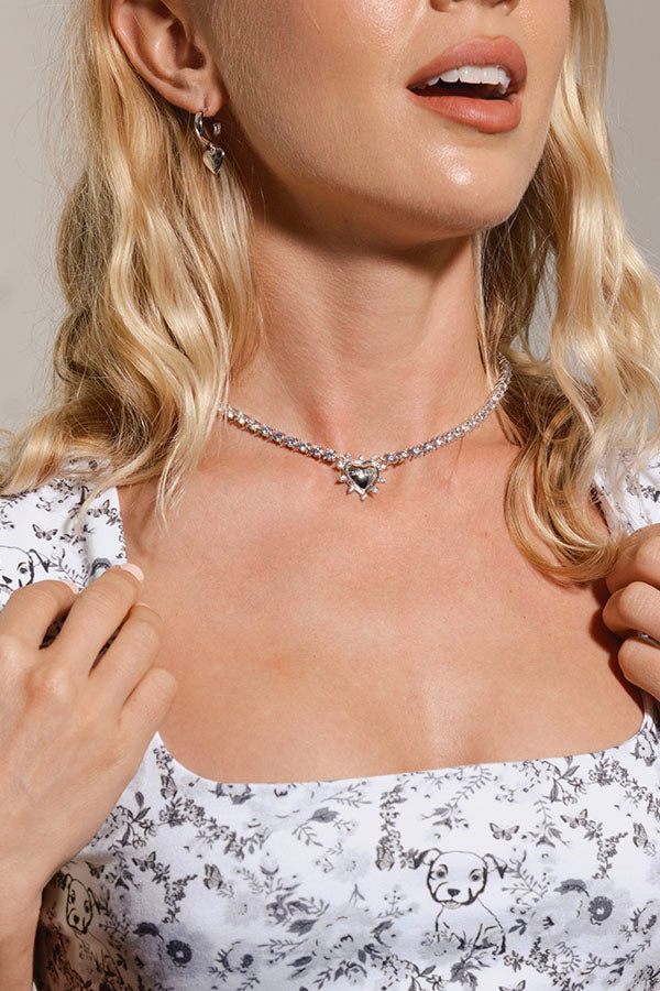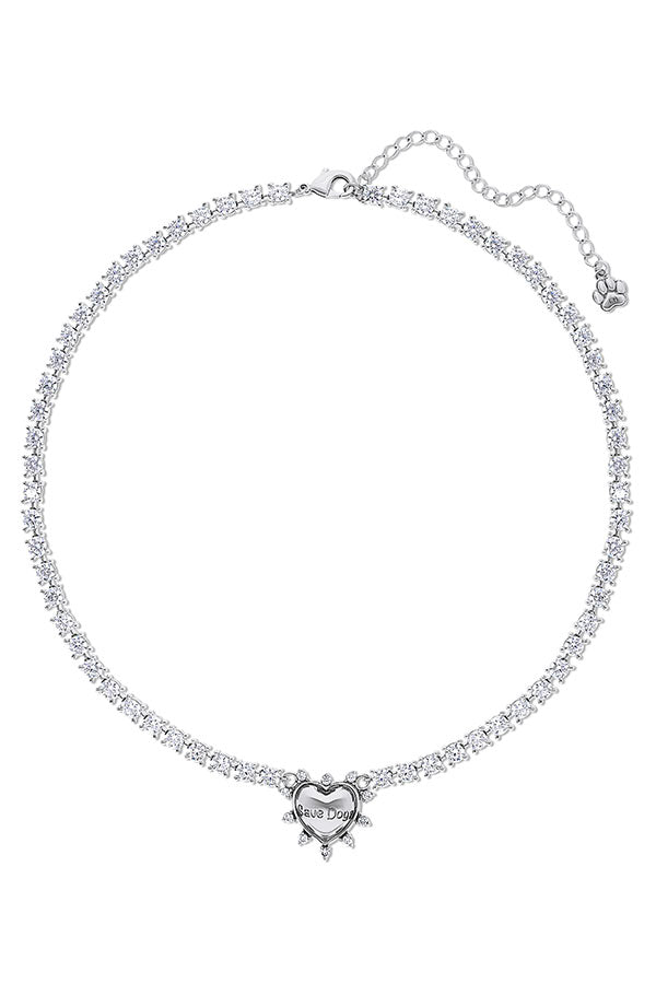 Wear your heart on your sleeve with our stunning & intricately crafted Just One Wish Statement Necklace. This style is part of our “Just One Wish” collection, featuring a delicate CZ studded chain, centered around a silver heart with “Save Dogs” engraved detail & gorgeous CZ accents. Crafted from rhodium plated brass, and finished with a lobster clasp & our signature paw print tag, you’ll be the center of attention in this exquisite statement piece.