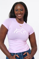 Our full-length fitted logo tee in pink features our dog logo in white. Created from ultra-soft organic cotton, this tee has a comfortable and relaxed fit. Perfect to pair with your favorite jeans or leggings, this style is sporty and you can feel good knowing it gives back.