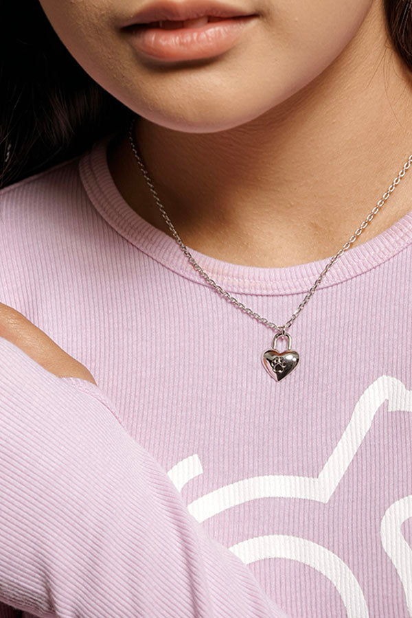 The Key To My Heart Necklace is inspired by the fur baby that holds the key to your heart. This intricately designed style features a dainty chain centered around a chic & adorable heart-shaped lock pendant, with engraved paw print detail. Crafted from high-quality rhodium plated brass, and finished with a lobster clasp & our signature paw print tag, this will be the meaningful piece you’ll wear everyday.