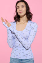 Cloud Haven Long Sleeve Scoop Neck Tee in Sky Blue