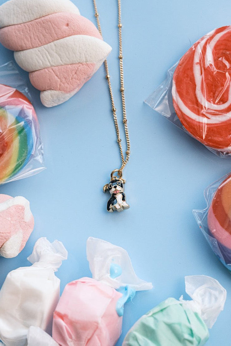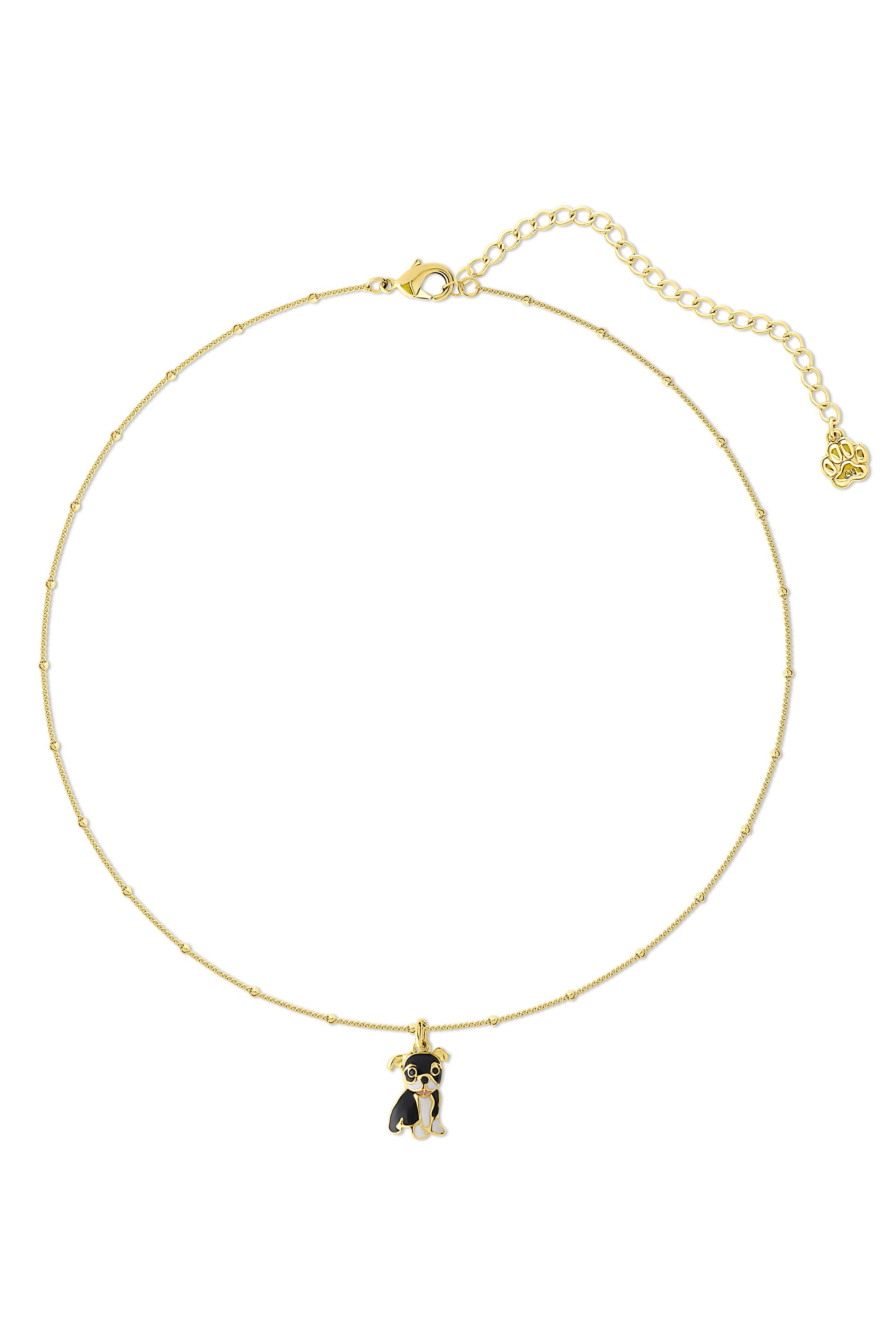 Our sweet as candy Mini Bulldog Pendant in Licorice Black is too cute for words. These adorable 24k gold plated pedants are enamel plated in limited edition colors, and are beautifully accented by a delicate beaded chain. Sized at 15” with a 3” extender, and finished with a lobster clasp and our signature paw print tag. These cuties are perfect for layering or gifting.