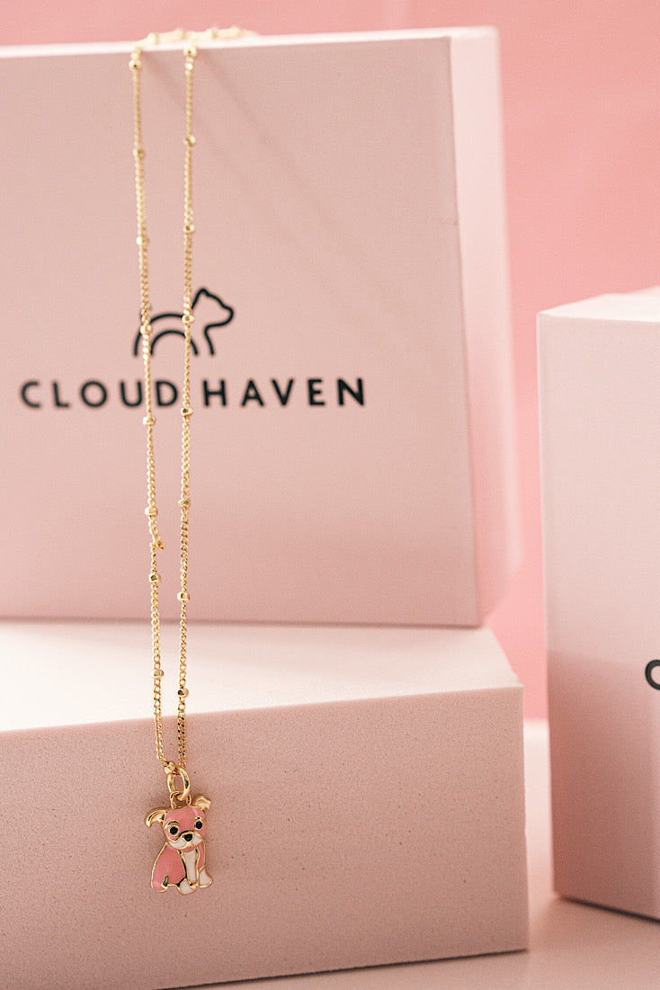 Cloud Haven Bulldog Sweetie Pendant Necklace in Bubblegum Pink