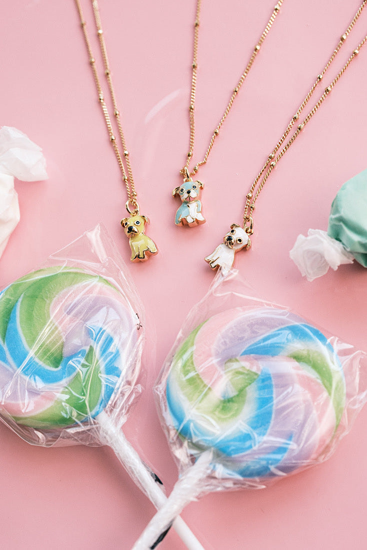 Our sweet as candy Mini Bulldog Pendant in Swirl Pop Turquoise is too cute for words. These adorable 24k gold plated pedants are enamel plated in limited edition colors, and are beautifully accented by a delicate beaded chain. Sized at 15” with a 3” extender, and finished with a lobster clasp and our signature paw print tag. These cuties are perfect for layering or gifting.