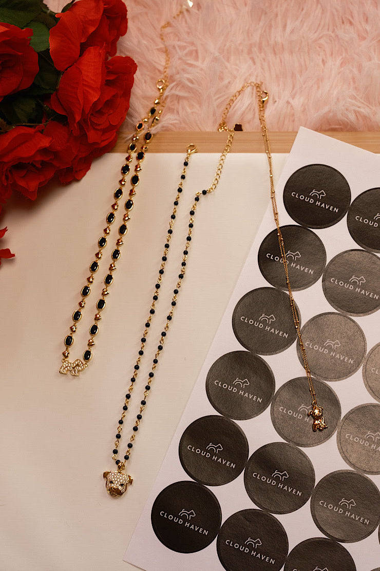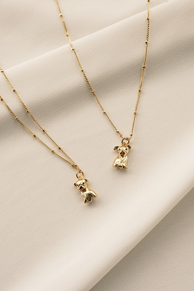 Our sweet as candy Mini Bulldog Pendant in Truffle Gold is too cute for words. These adorable pedants are 24k gold dipped, and are beautifully accented by a delicate beaded chain. Sized at 15” with a 3” extender, and finished with a lobster clasp and our signature paw print tag. These cuties are perfect for layering or gifting.