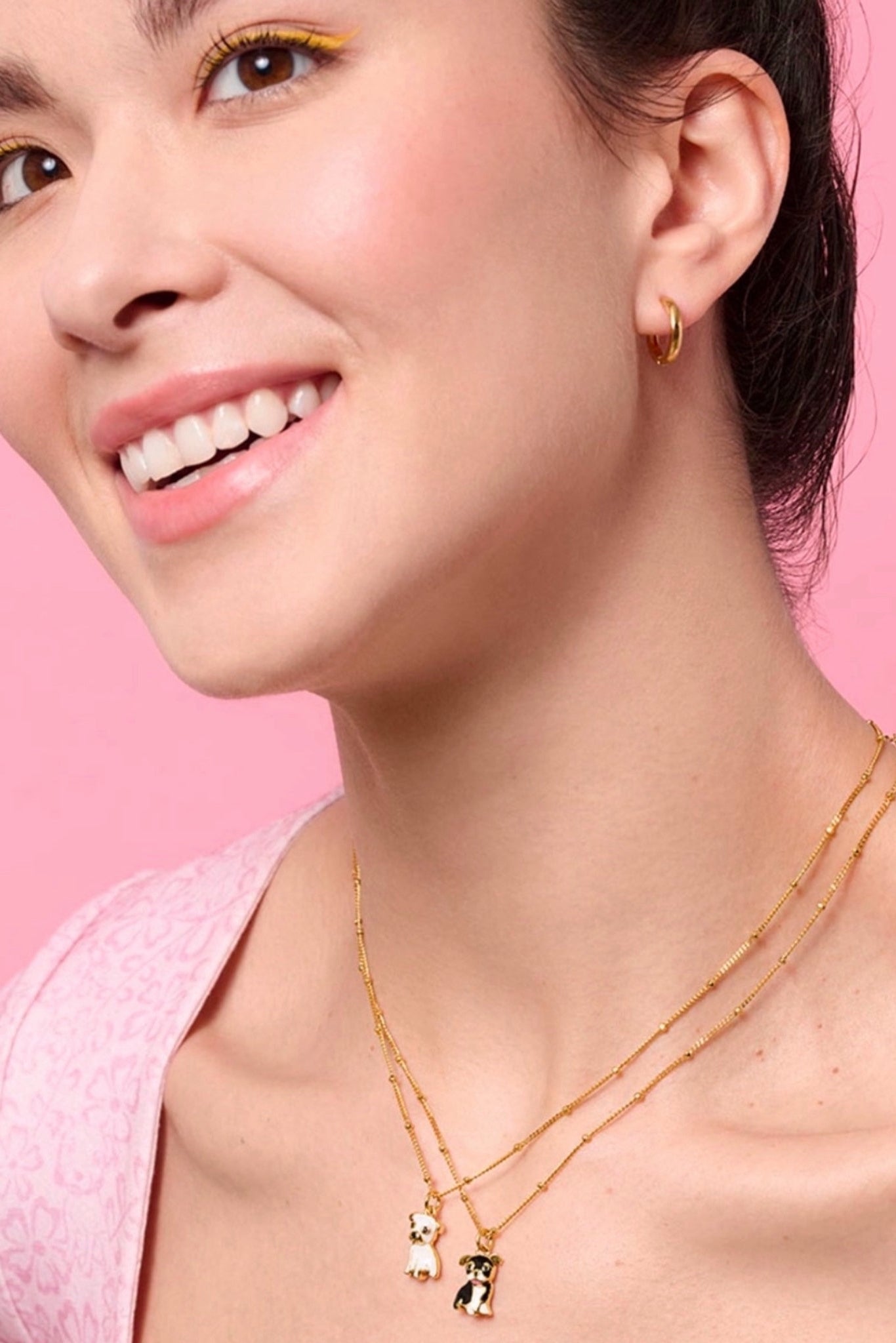 Our sweet as candy Mini Pittie Pendant in Licorice Black is too cute for words. These adorable 24k gold plated pedants are enamel plated in limited edition colors, and are beautifully accented by a delicate beaded chain. Sized at 15” with a 3” extender, and finished with a lobster clasp and our signature paw print tag. These cuties are perfect for layering or gifting.