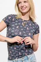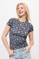 Cloud Haven Fitted Signature Print Tee in Soft Black Floral
