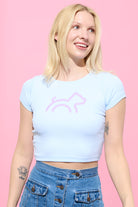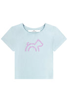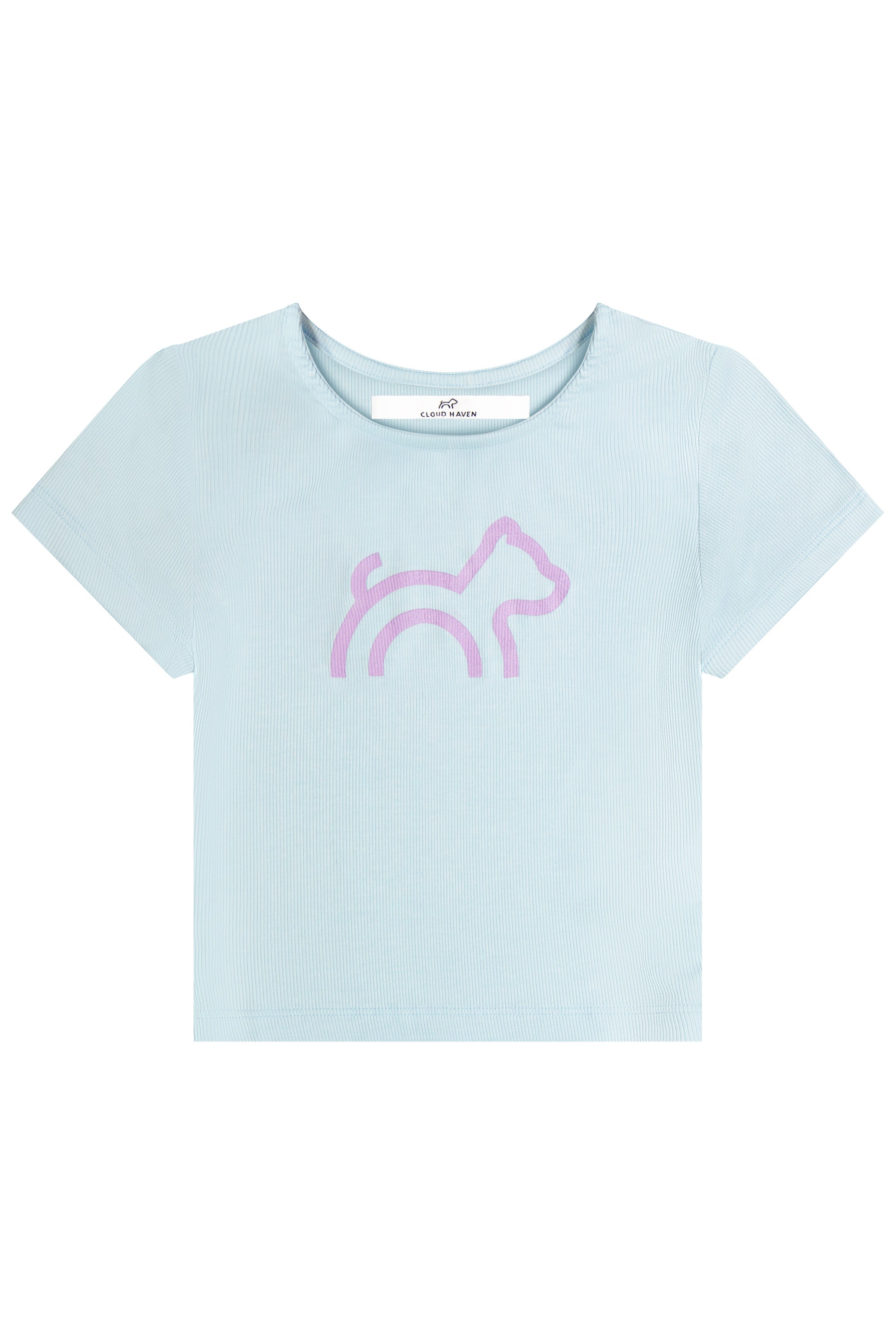 Meet our Cloud Haven Rib Logo Tee in sky blue. Cut from an exquisitely soft Tencel Modal and Spandex blend, and featuring our brand pink dog logo, this tee symbolizes that together we’re making a difference. Wrap yourself in comfort and feel good knowing this style gives back.