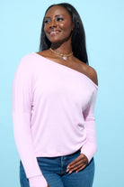 Cloud Haven Off The Shoulder Relaxed Logo Tee in Soft Pink