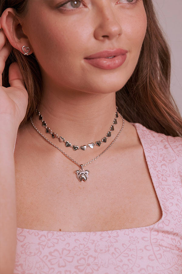 Do Bulldogs hold a special place in your heart? Part of our “Forever & Always” collection, our Sweet Bulldog Pendant Necklace is crafted from premium rhodium plated brass, and finished with a lobster clasp & our signature paw print tag. You’ll cherish this intricately crafted piece with stunning cz detail, as it’s a heartfelt reminder your love for Bulldogs is forever & always.