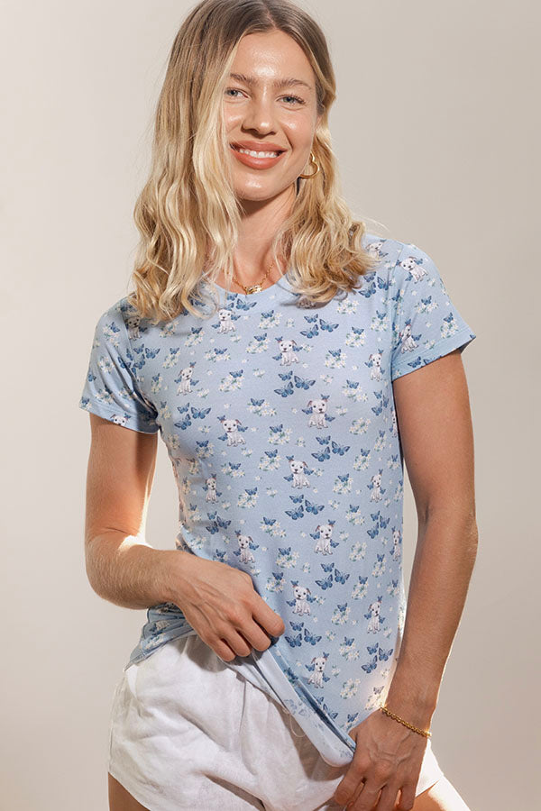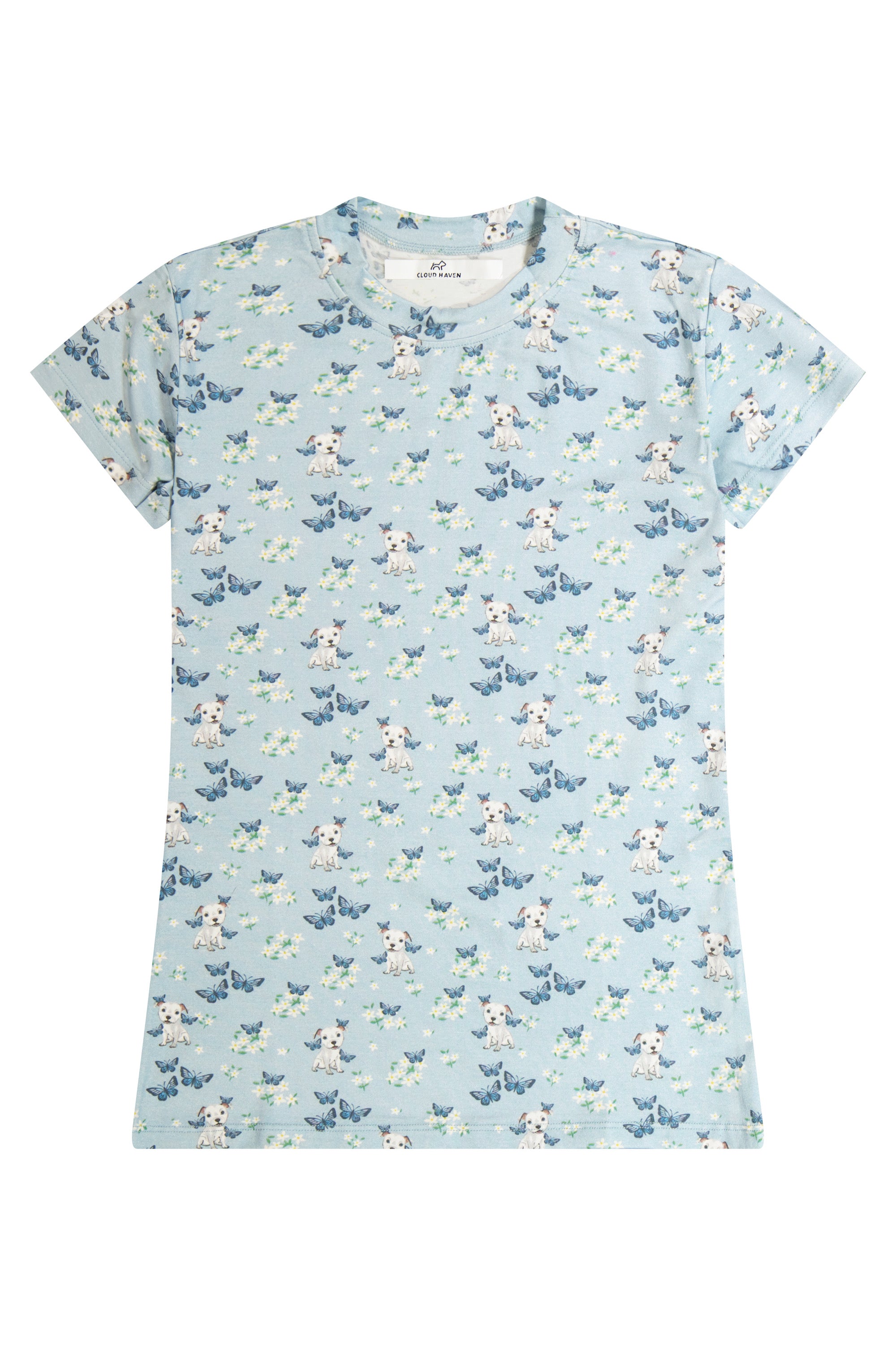Cloud Haven Fitted Signature Print Tee in Blue Daisy