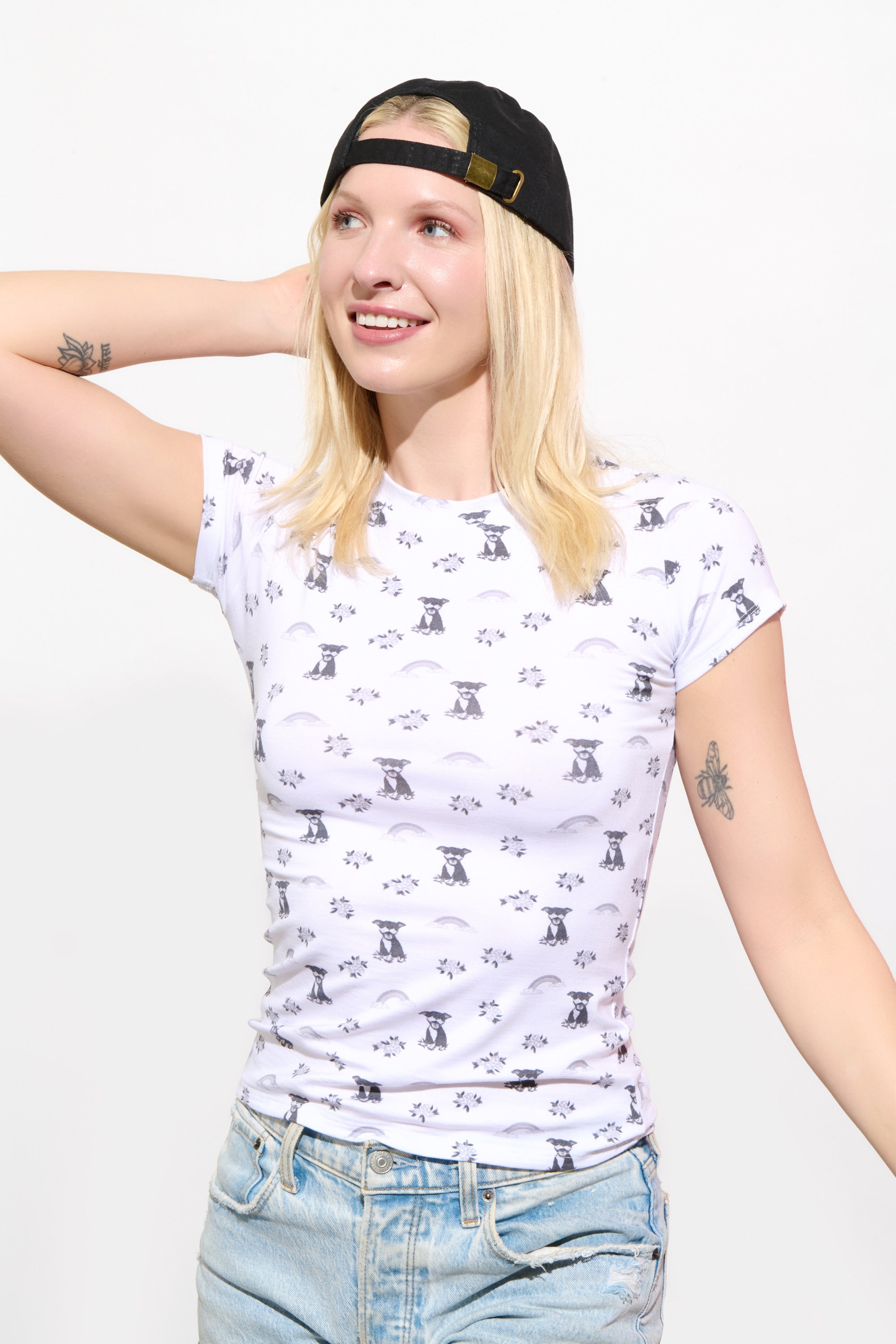 Cloud Haven Fitted Signature Print Tee in Black & White Ditsy