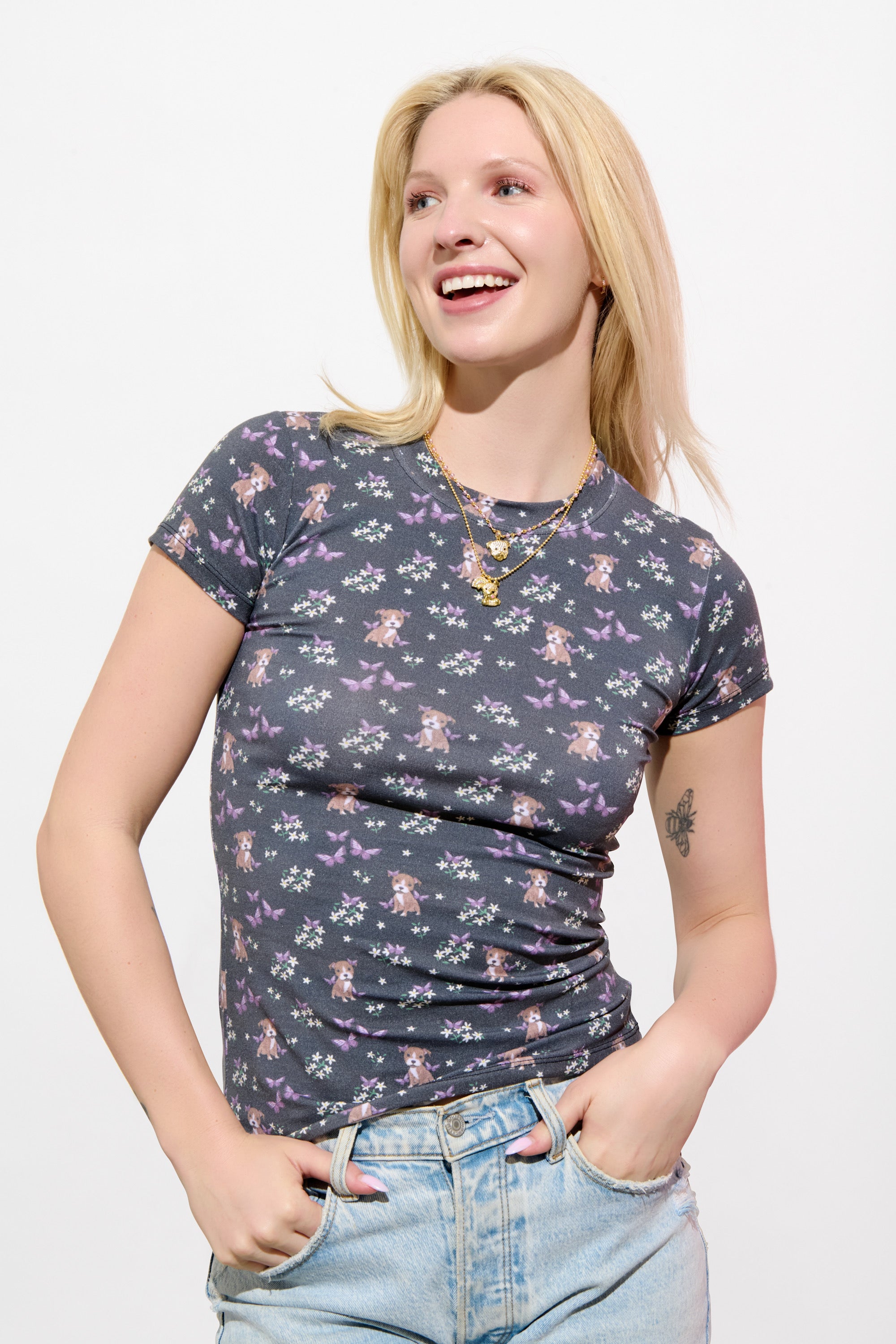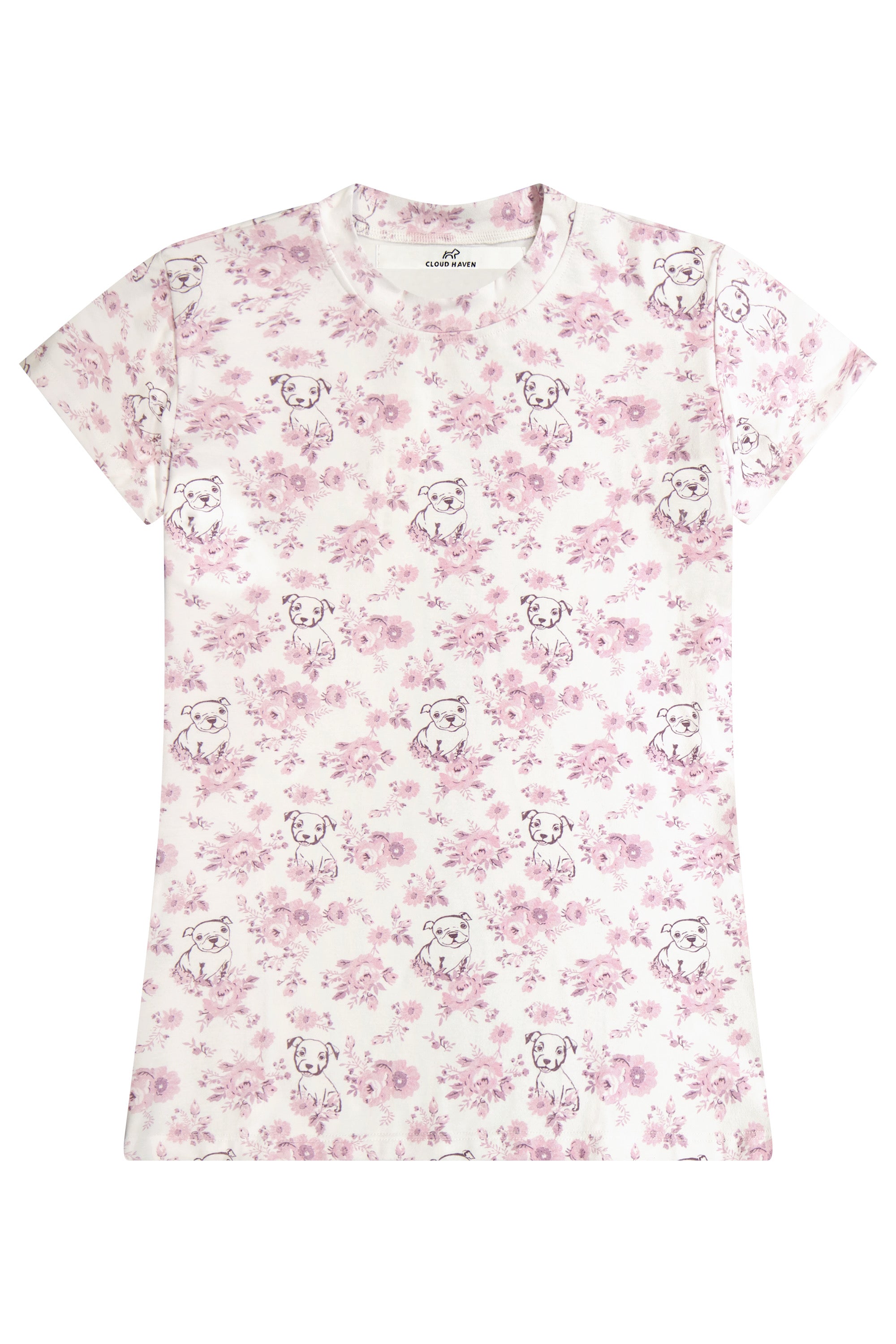 Cloud Haven Fitted Signature Print Tee in Ditsy Pink