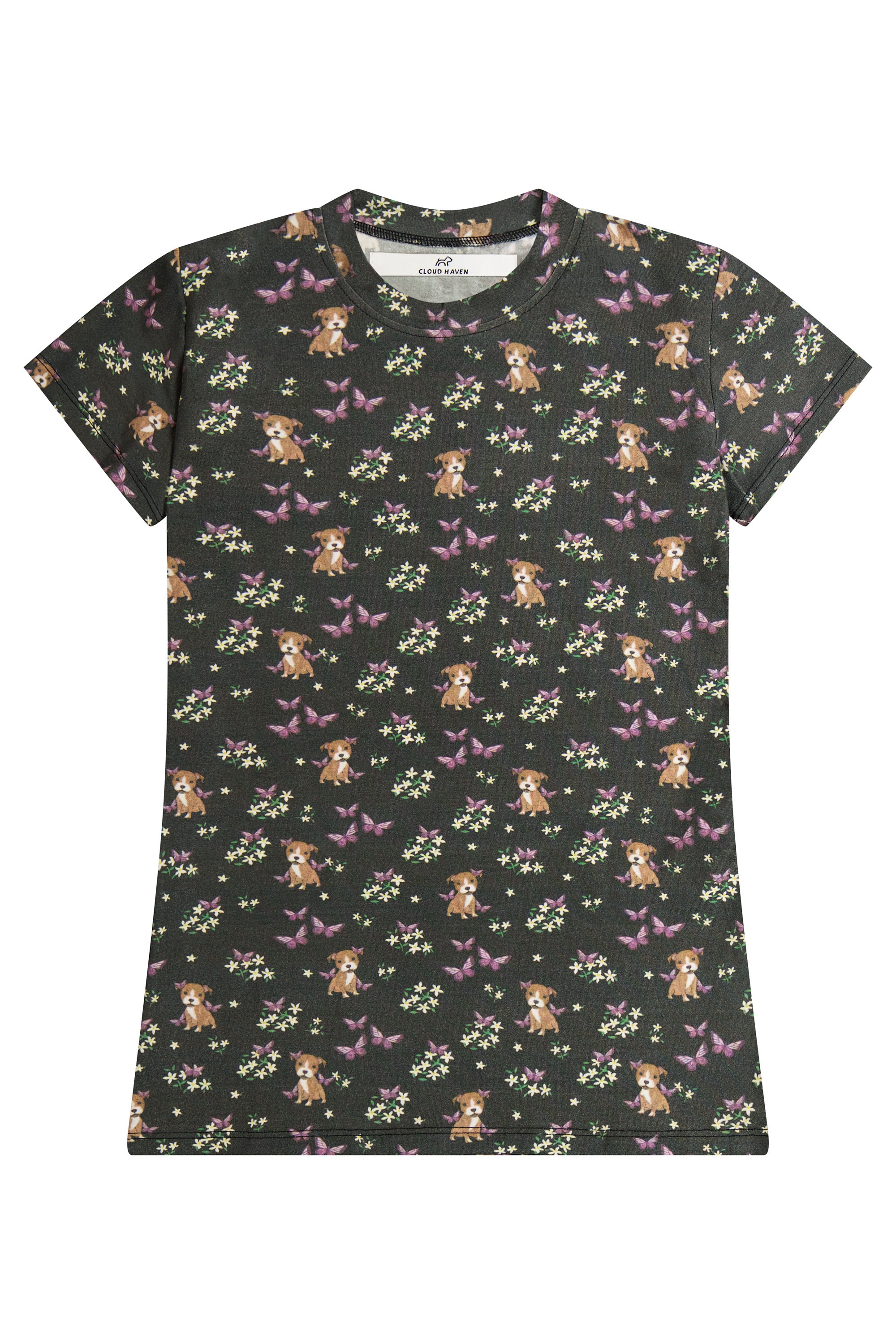 Cloud Haven Fitted Signature Print Tee in Soft Black Floral