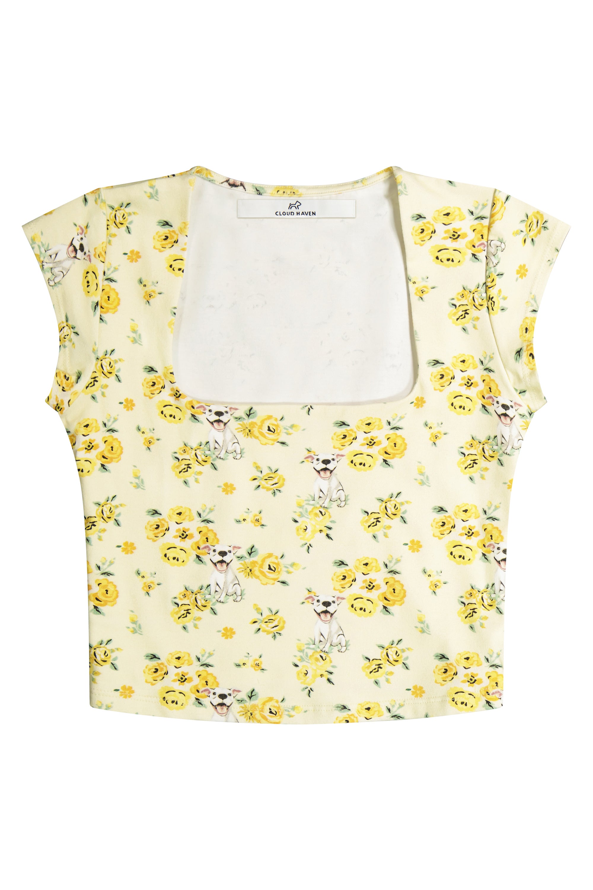 Cloud Haven Smiling Pittie Square Neck Tee in Sunflower Yellow